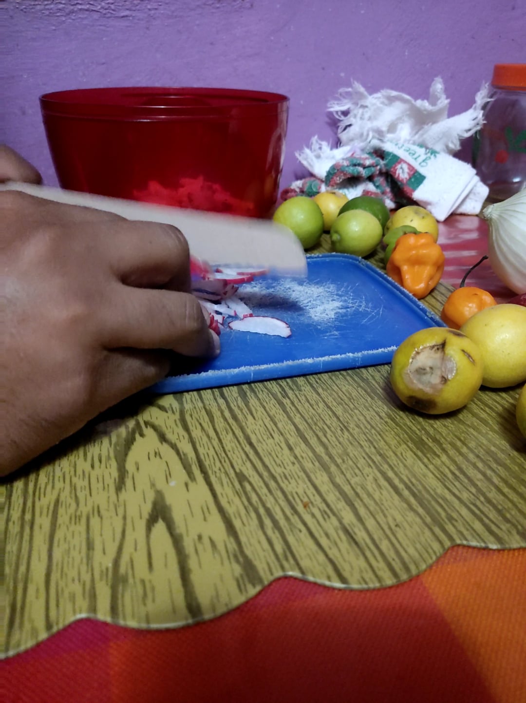One or two onions, three radishes, 8 lemons, two or three habaneros, and salt to taste.