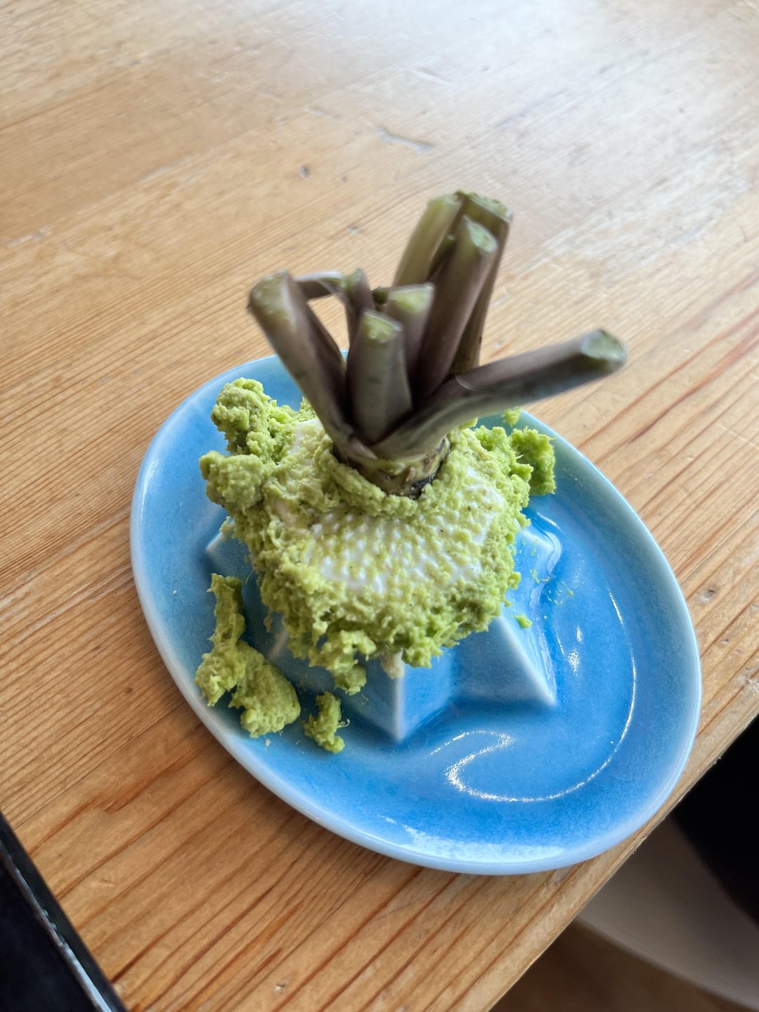 Pre-COVID, there was a restaurant at Narita airport that gave diners some fresh wasabi root and a little ceramic grater, so they could grate wasabi over their food (mainly tempura, or maybe udon?). We used to go there every year when we’d fly back home. It was great – I think the owner had a wasabi farm in western Tokyo, or somewhere similar.