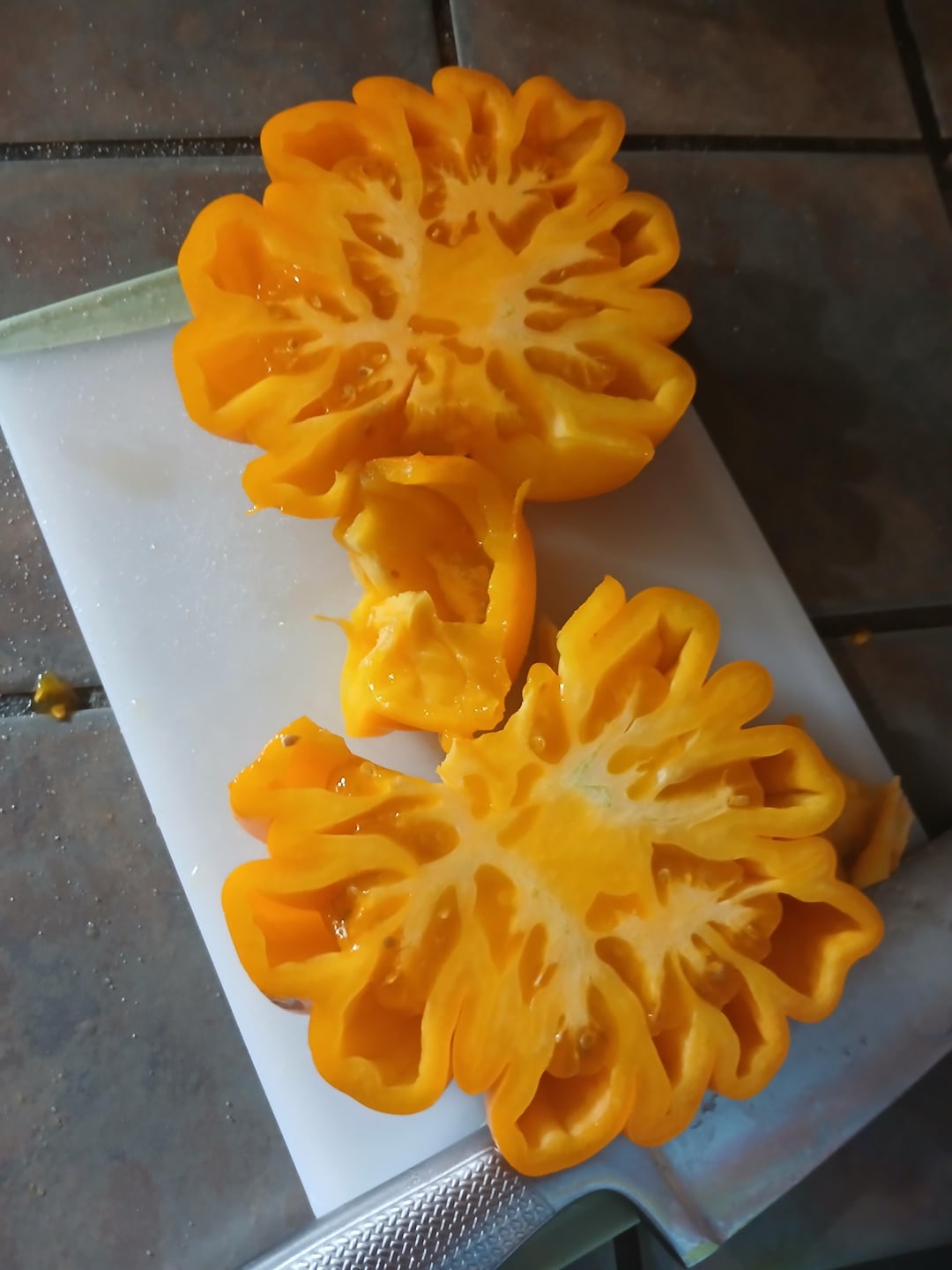 I’ve grown these for a few years and while I think they look amazing, flavor wise they are not my favorite tomato. There are definitely better slicers and sandwich tomatoes out there, like Brandywines or Pineapple. In my opinion this is a decent stuffing tomato due to the large size, lack of juice or pulp, and large open interior.
