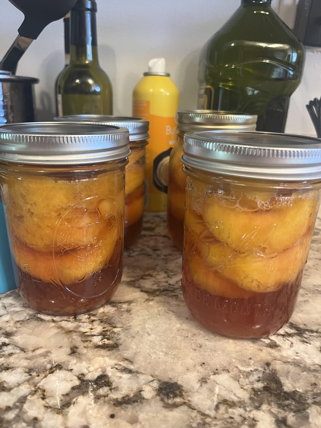 Boil canned a couple pounds of peaches with a whiskey/simple syrup base. Processed for 30 minutes and when I went to pull them out of the canner, the jars tipped over and I could hear bubbles or air coming out of the jars. Sat them on the counter and could easily smell the whiskey. Did I mess up? Are these safe?