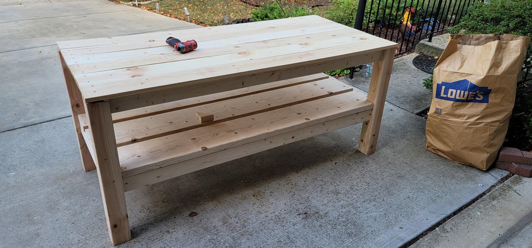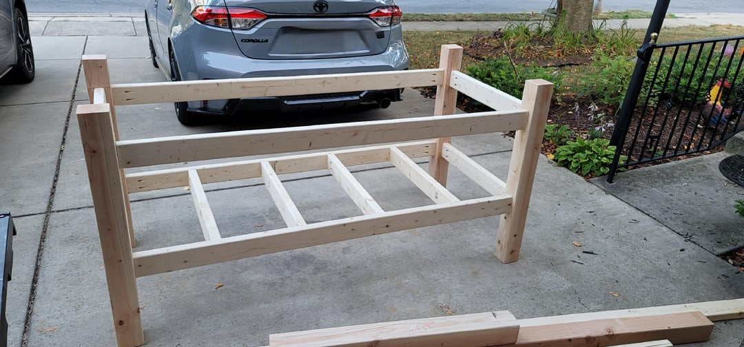I feel like that’s a lot of weight for just pocket holes. Hope it holds up fine. What’d you stain and seal with?