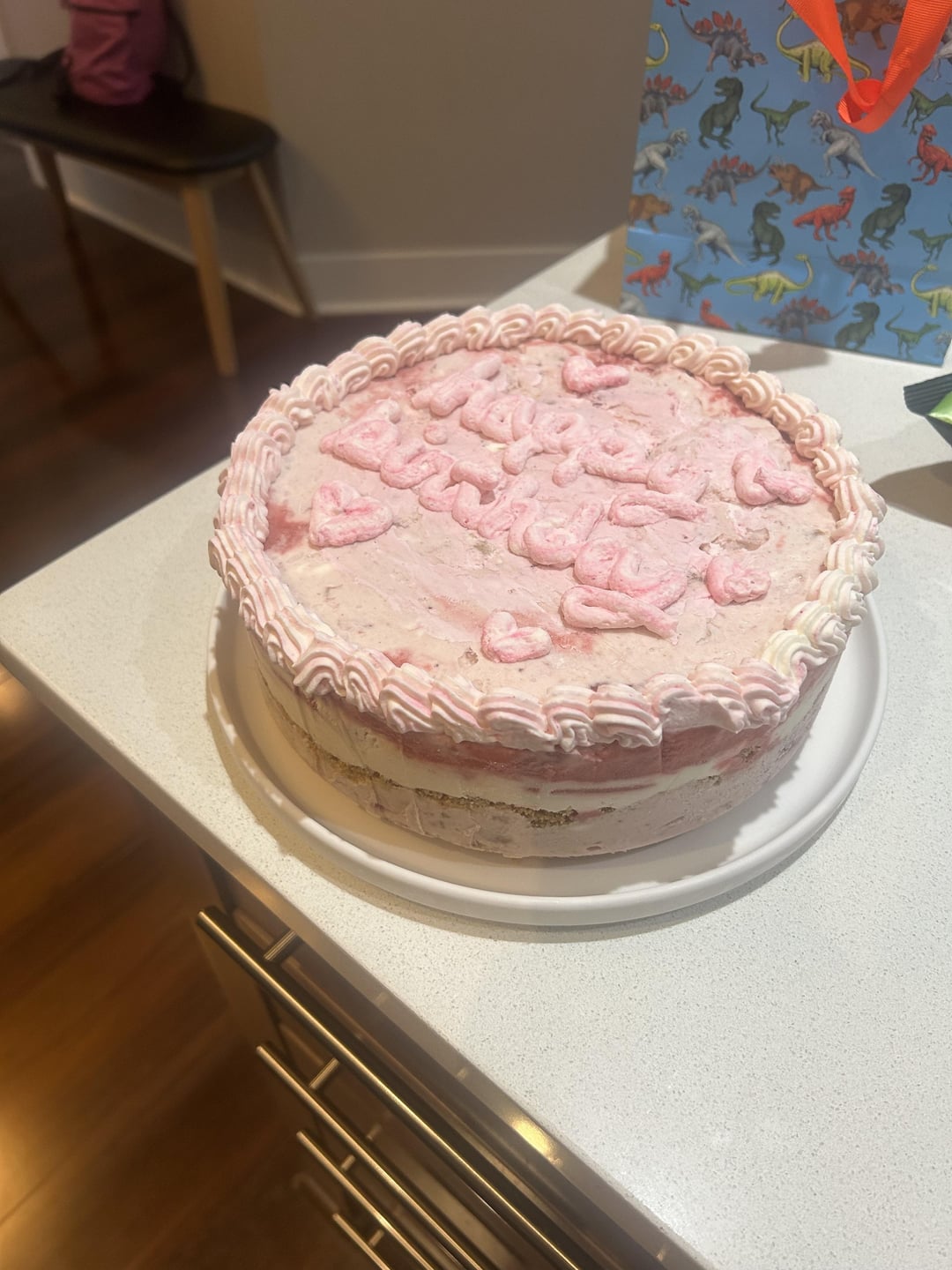 It was a cheesecake ice cream base with strawberries and actually cheesecake pieces mixed in. I then had layers of strawberry sauce, whipped cream and a crunchy graham cracker before another ice cream layer. Turned out great and excited to make more ice cream flavours!