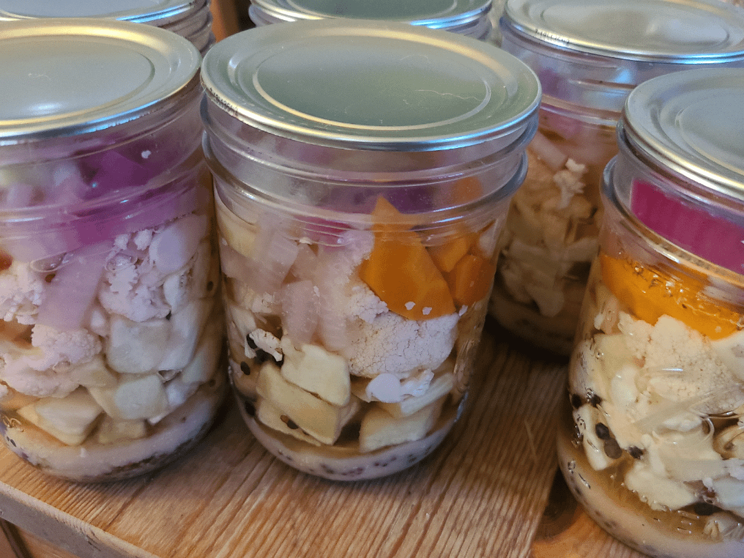 Miso Vegetable Pickles, from the all new Ball book. I'm going to let these sit for a while before cracking them open. I had an awkward leftover amount, I've tried those and they were good but I suspect aging will change these.