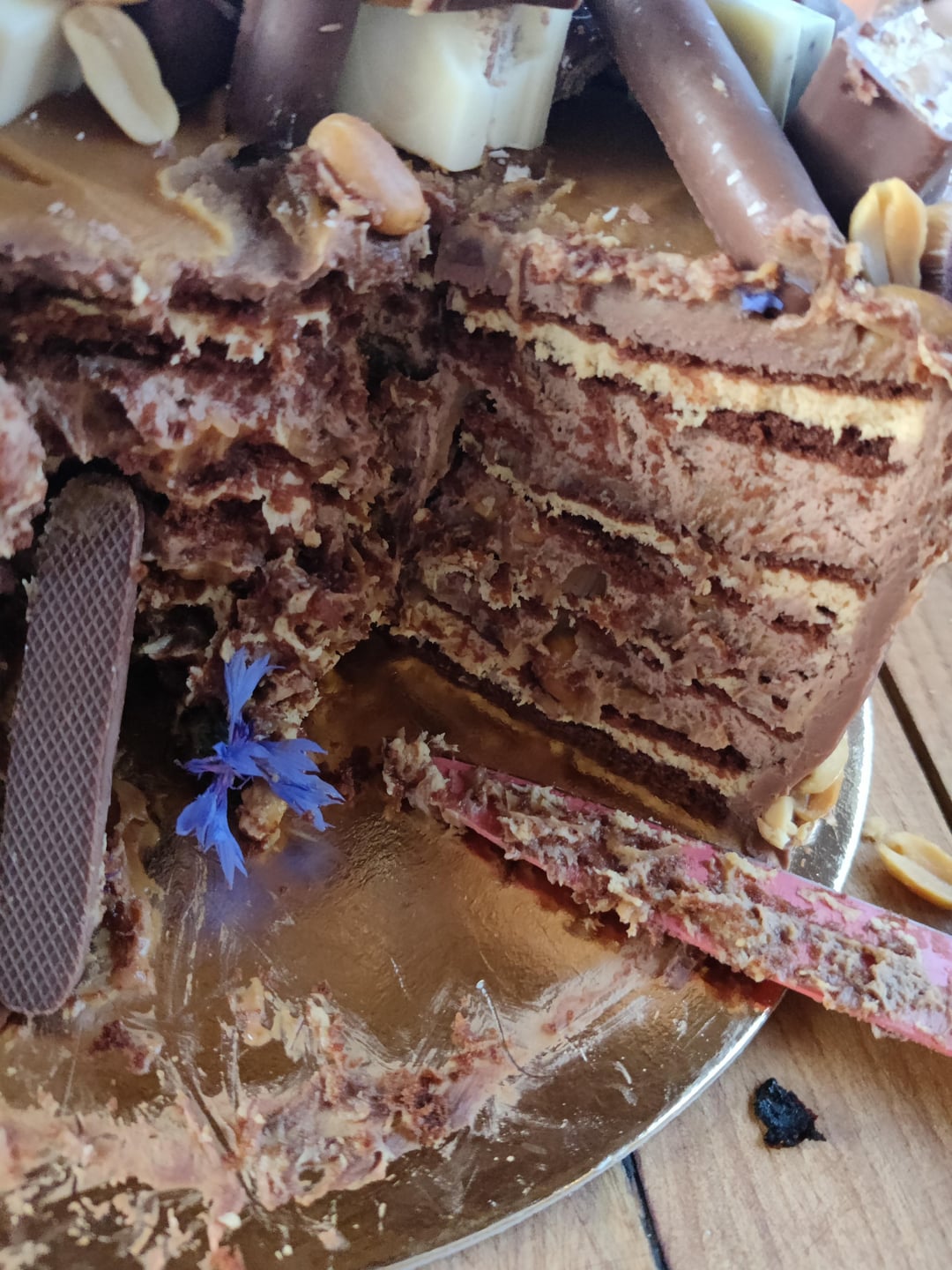 This looks so good. It’s so challenging to get drips to just slightly roll off the top the way you did. I always end up with them falling all the way down. The flowers give it a nice little pop of color. Beautiful cake!
