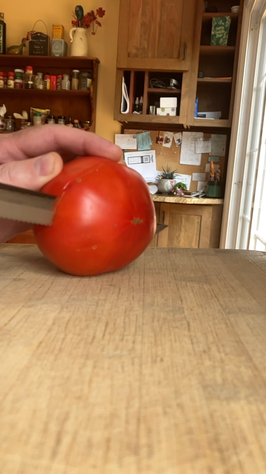 Great looking tomatoe. I upvoted for that reason. The slow mo almost made me downvote you. I despise that when unnecessary. Here it was not necessary. Still, beautiful mater.