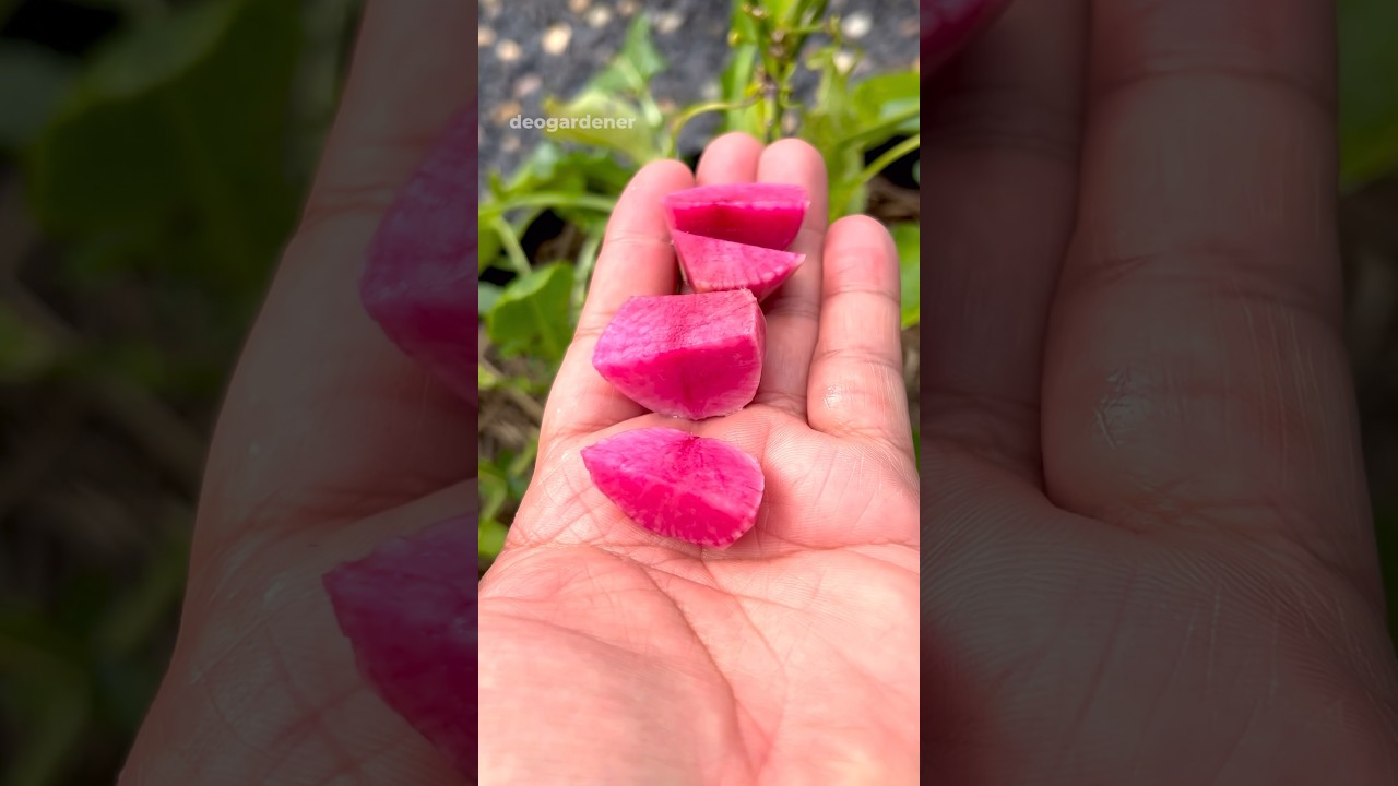 Watermelon radish as a snack #gardening #vegetablegarden #vegetablegardening #fyp #radish