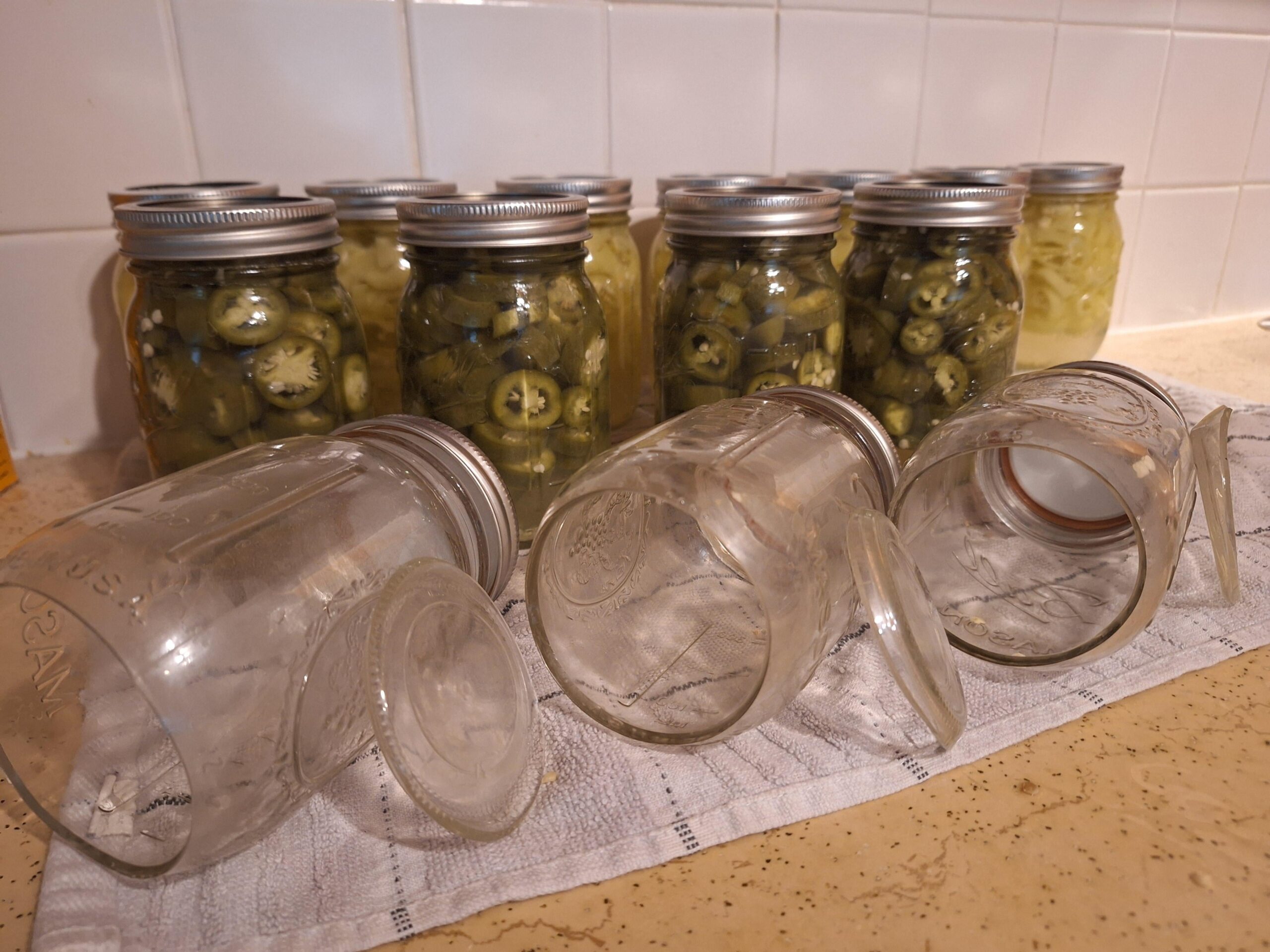 This is my fourth year canning and I just experienced thermal shock. I have been using a silicon mat that goes on the bottom of your pot. Just ordered a canning rack lol. I was canning peppers and I had the water up too high on the second batch. I set all my cans in and heard "pop…..pop, pop". I usually drop my cans in a low simmer but I did it at a rolling boil. Lesson learned.