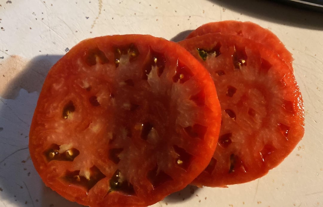 Just wanted to share this bread slice-sized tomato today. It was delicious!