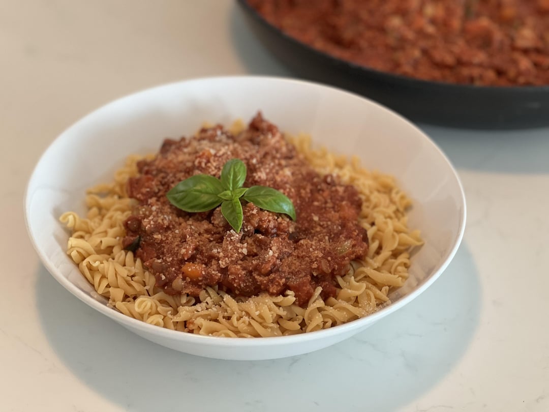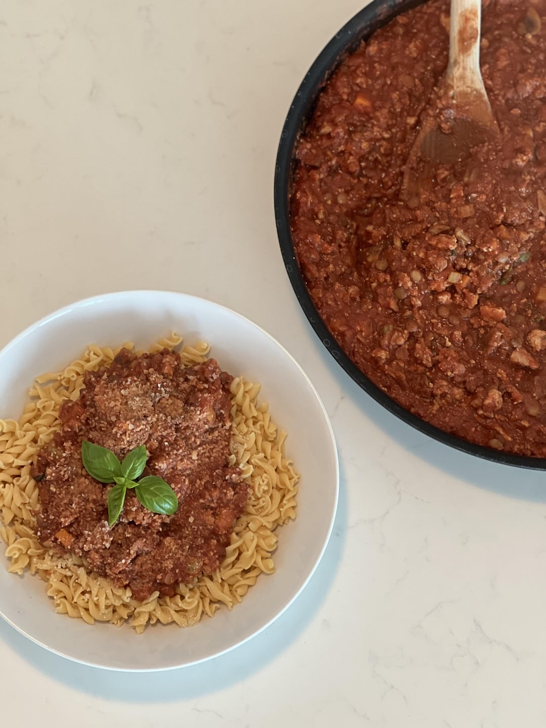 11. Serve over pasta of your choice, with vegan parmesan on top. Enjoy 💕