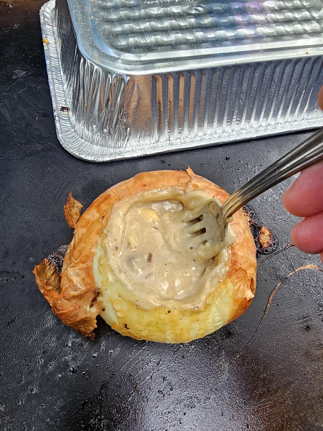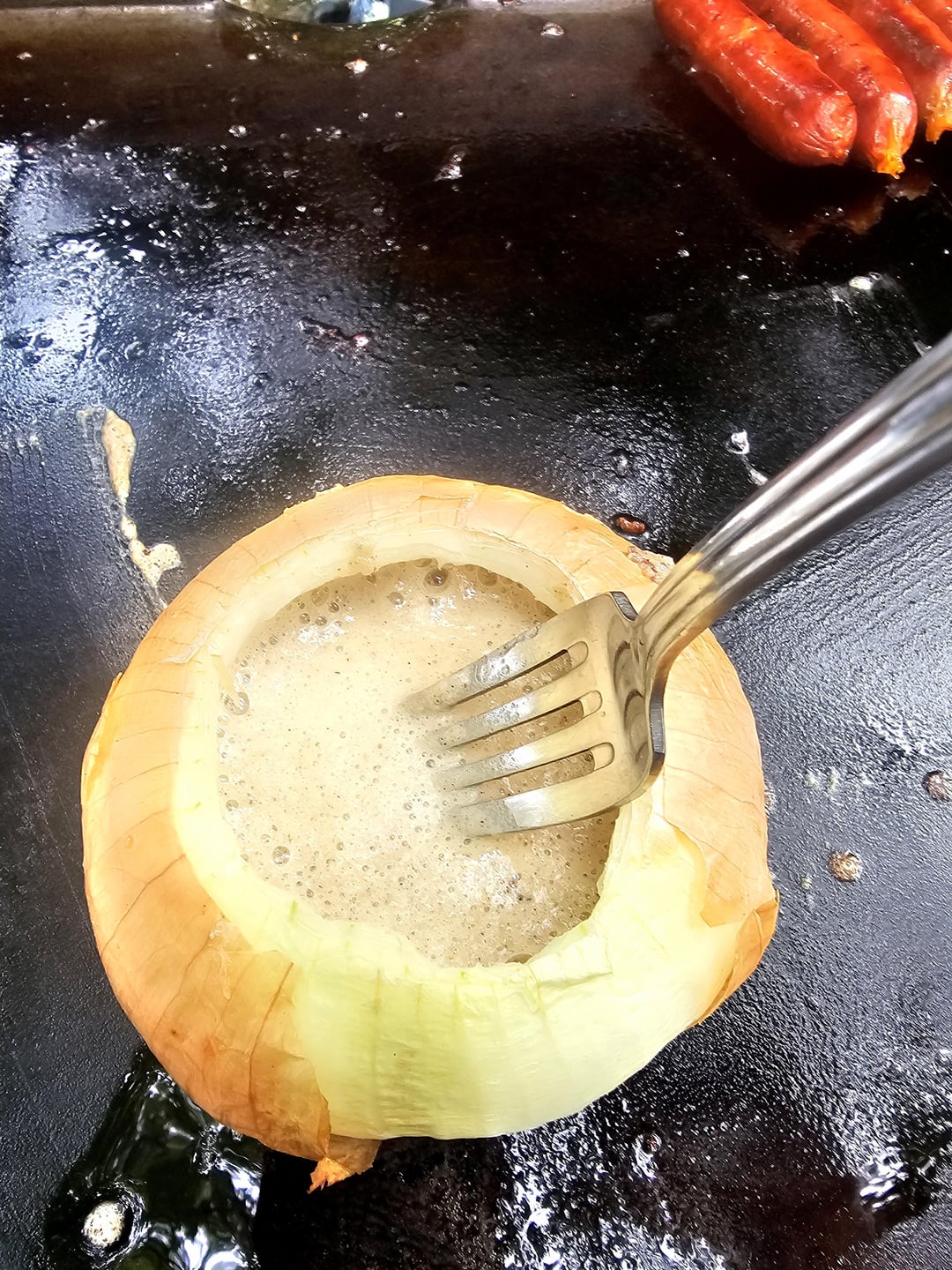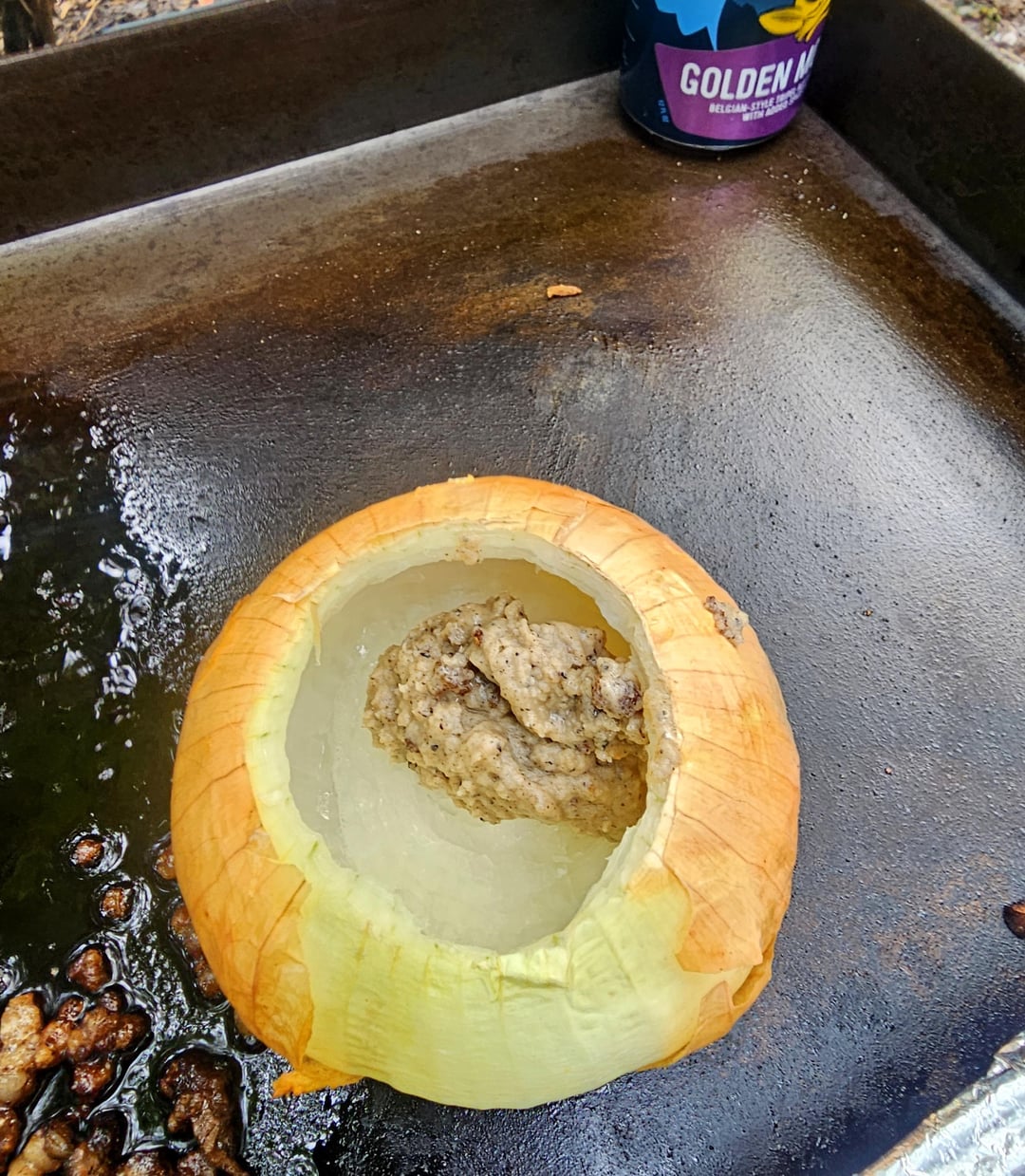 Start by playing knifey spoony to hollow a large onion, I try to leave the outer 2 layers