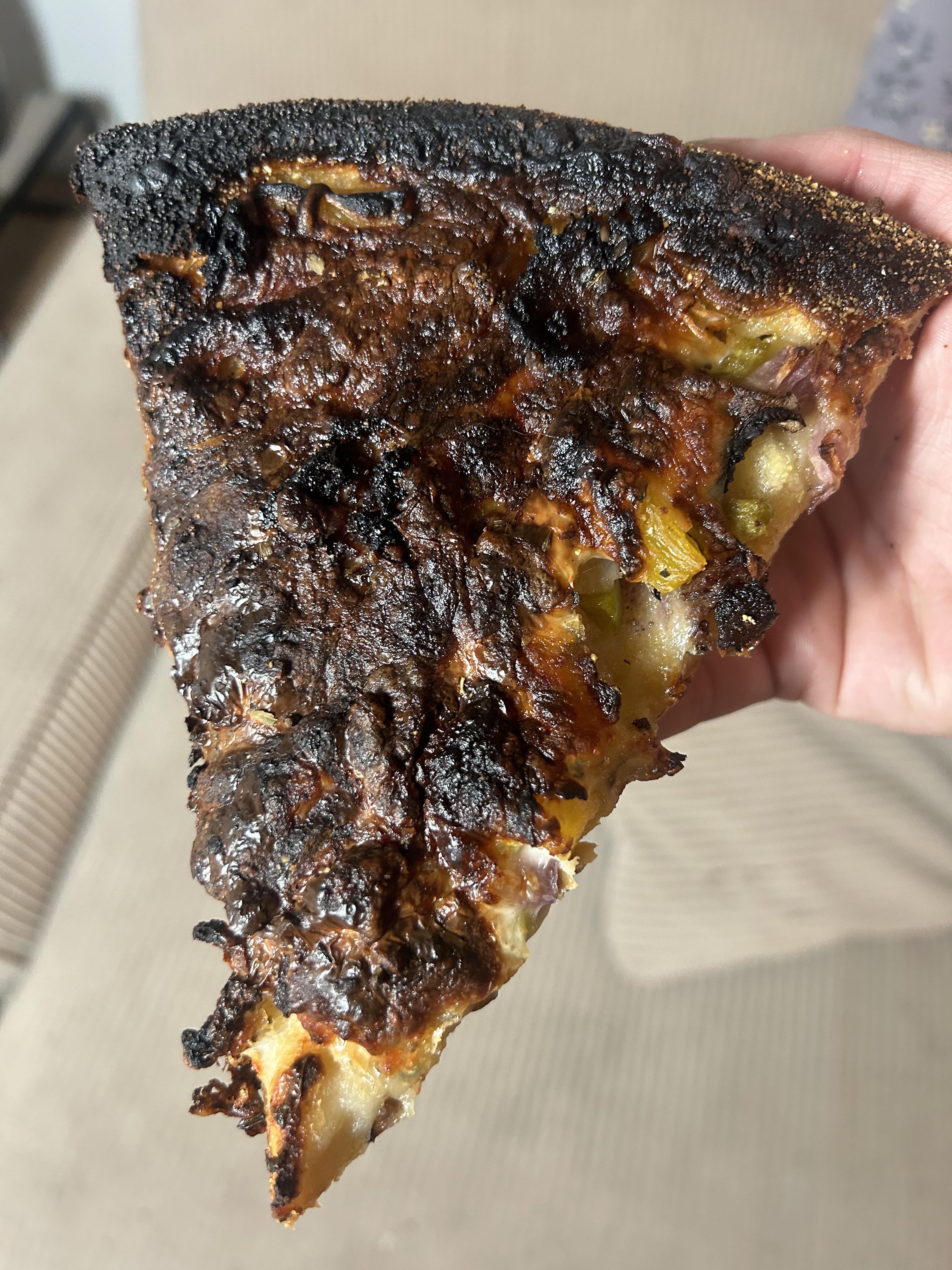 They left their pizza slice under the broiler too long. Yes, they still ate it. Mmm, carcinogens.