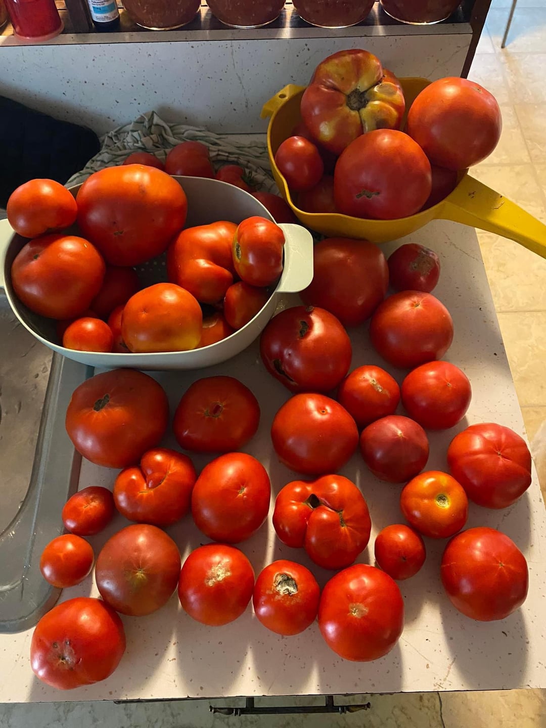 I live in lower NW Georgia. We have had a fabulous tomato season with harvest from late June until now when things are slowing down. While I am a bit sad that about 90% of the tomatoes are harvested, I am super happy with all the stuff I was able to do with my tomatoes to preserve them to eat throughout the year. I’ve still got plenty of tomatoes inside for sandwiches and fresh eating and enough on the vines to last another month or so with the new fruit set.