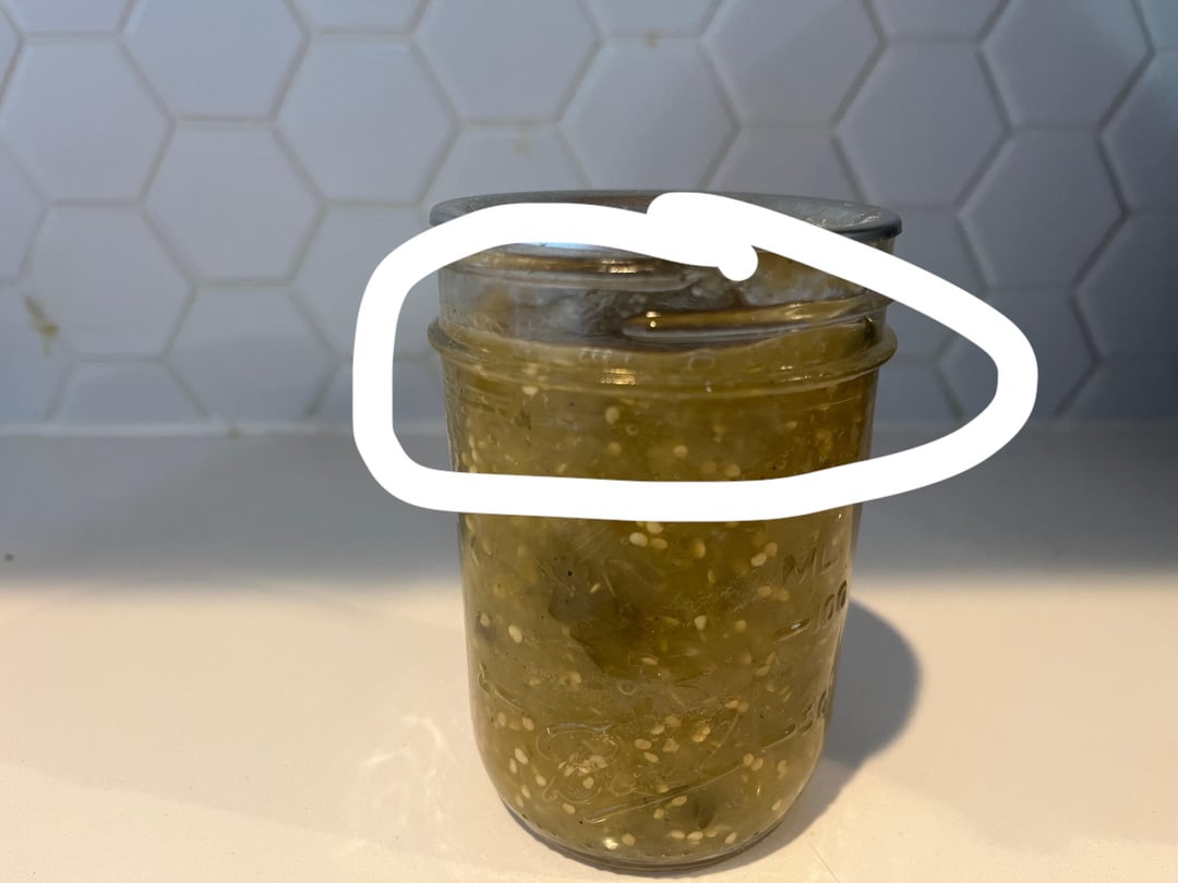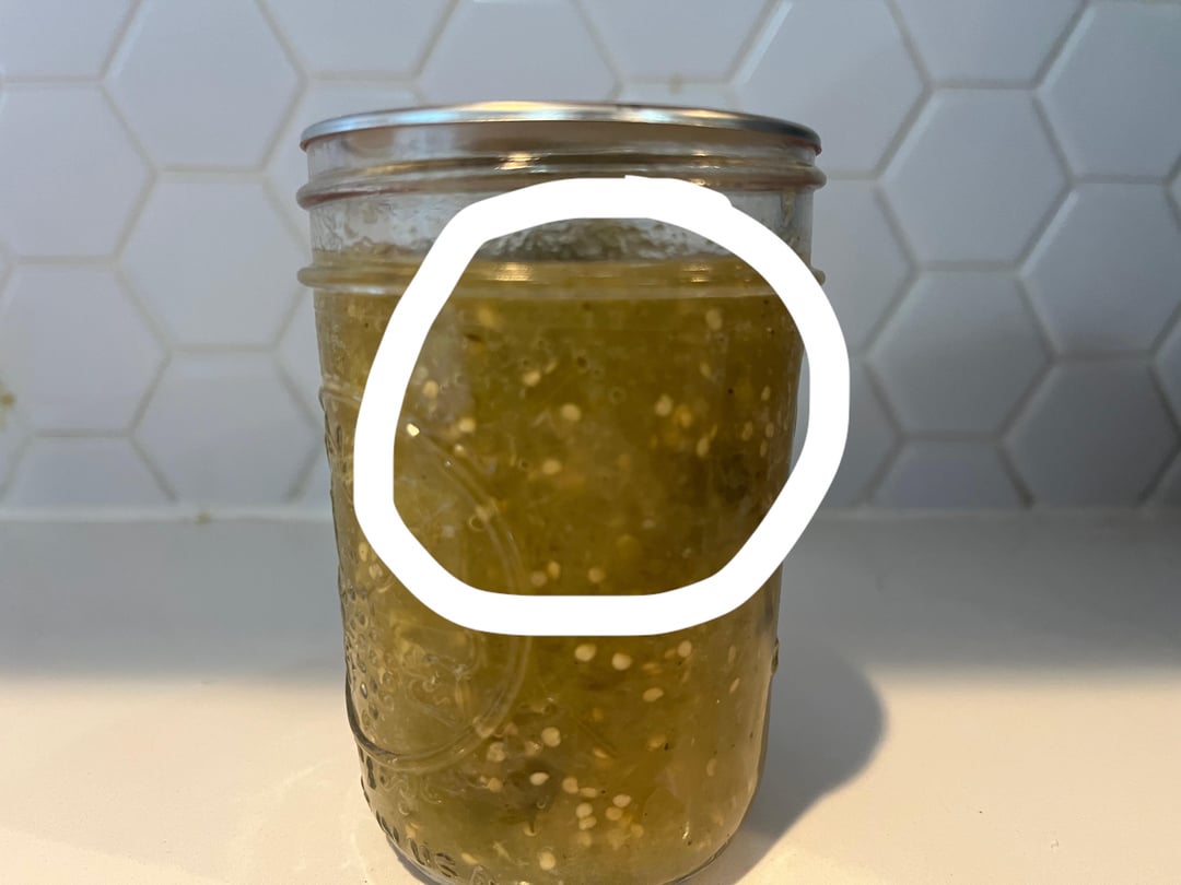 There are these little air bubbles in most of the jars. They were canned two days ago, and it’s the Ball Roasted Salsa Verde recipe.