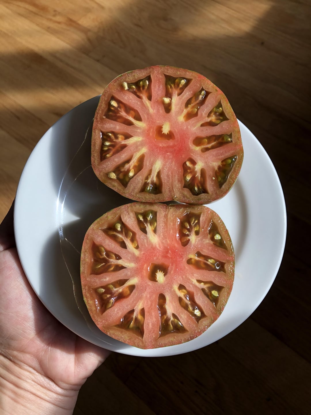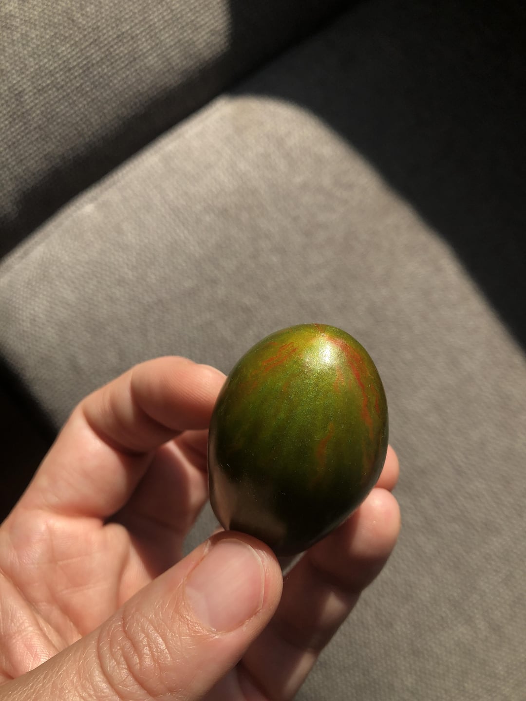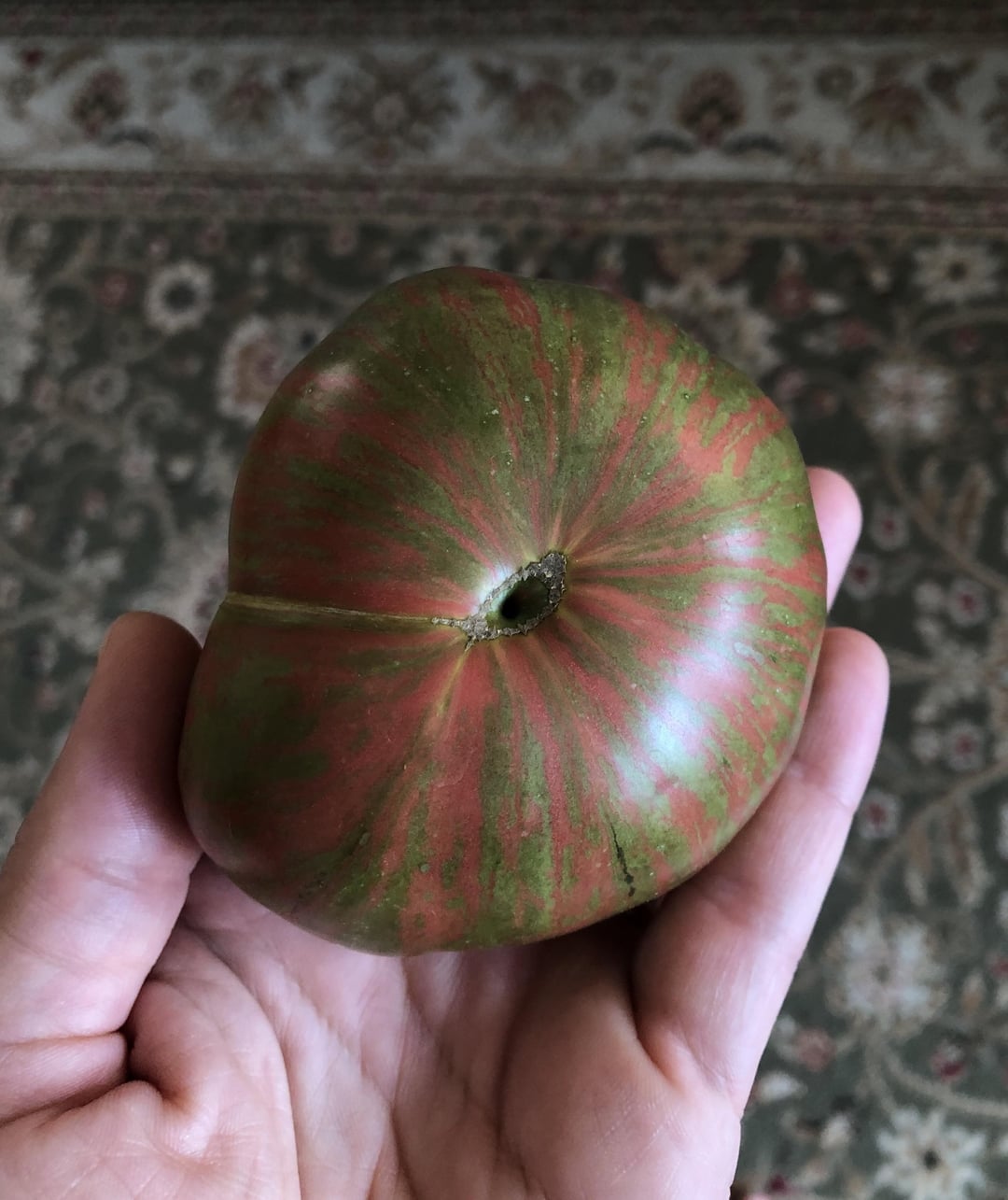 This striped one was grown from saved seeds from a gifted tomato a few years ago.