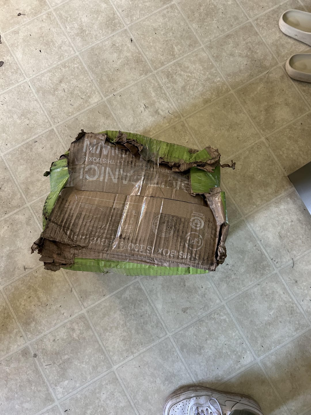 Who delivered it? That’s awful, and most likely not HF’s fault. But they should definitely be giving a refund. I’ve never had a box even remotely close to looking like this.