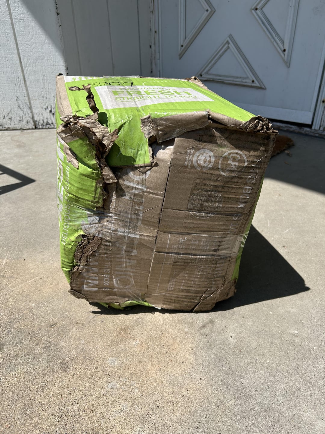 This condition is unacceptable but if Monday is your usual scheduled delivery day, I’d suggest switching to Tuesday or another other day. I know with UPS for those with a Monday delivery day, UPS frequently receives the Hello Fresh boxes on Friday/Saturday where they sit until they’re delivered to customers on Monday. This isn’t always the case but it is common.