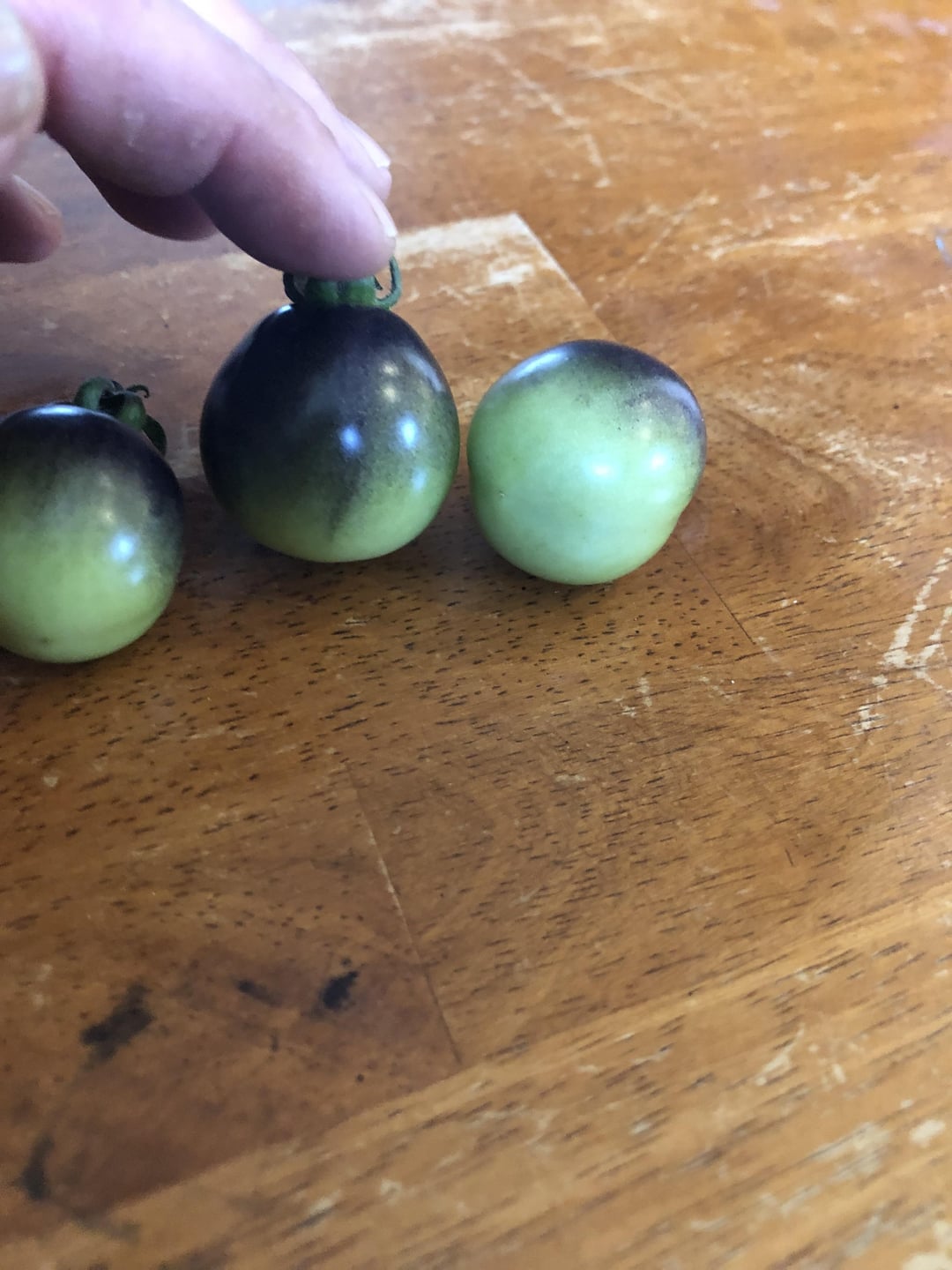 beans3710 1 year ago I have indigo blueberry cherry tomatoes. They look like that then turn gold when they are ripe. Before that they will be sour.
