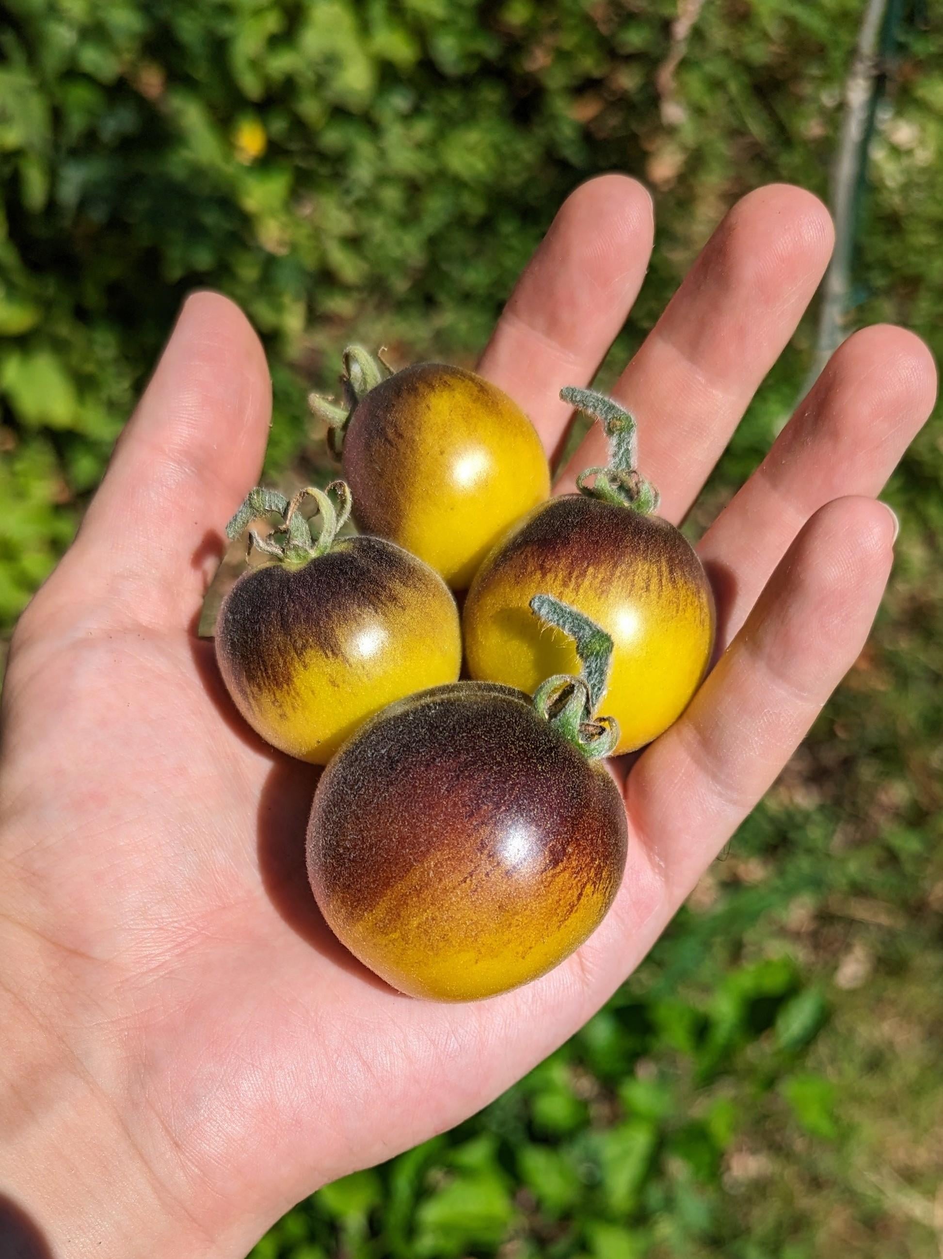 First time growing tomatoes and thought these looked interesting. Plants are loaded and they are great. Definitely growing them again