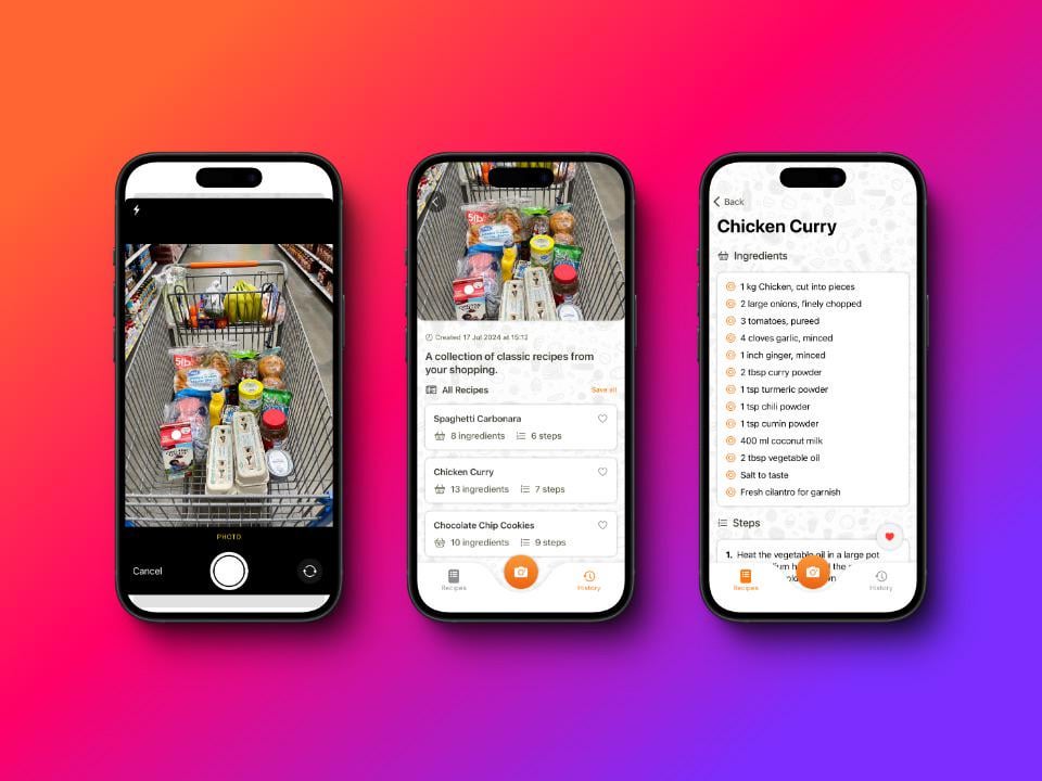 Hey everyone, I’ve recently launched a free recipe generation app (SnapRecipe) that makes recipe suggestions based on photos of your ingredients! I’d love some beta testers if anyone fancies checking it out. Any feedback or suggestions are very welcome.