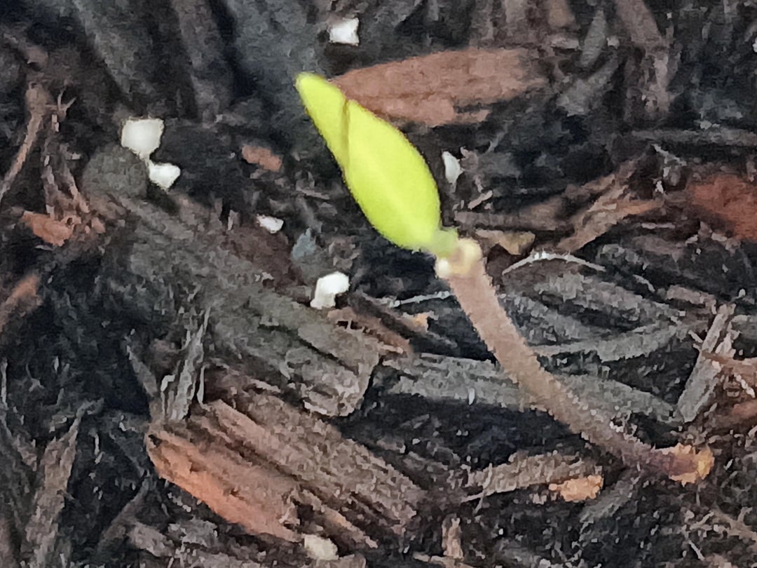Appears to be a yellow leaf growing out of a previously pruned point on a woody stem?