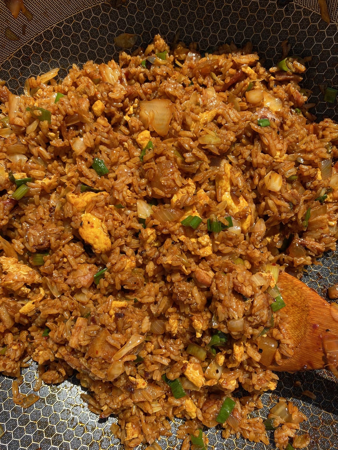It’s spicy, delicious, and honestly a total success. I think I’d prefer to use medium grain sushi rice cause I find it soaks in the sauce much better and kimchi suits sushi rice in my opinion. I’d also like to use more bacon and maybe even a thicker cut to kind. Overall, I’m pleased with this and I can’t wait to share this with my coworkers.