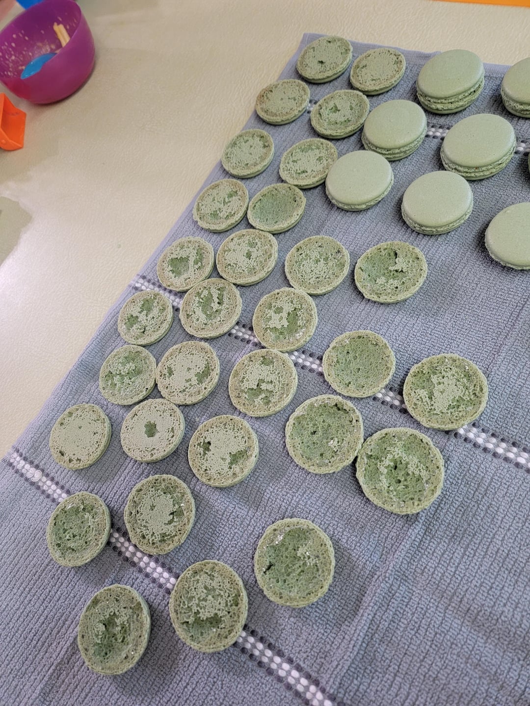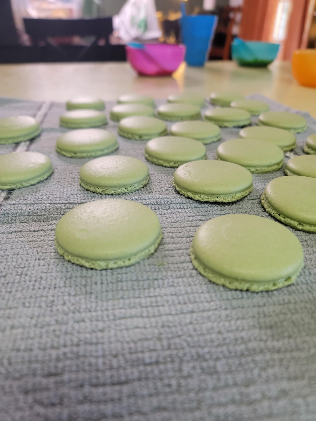 Also, are you saying that you rotated (“switching”?) the macarons every few minutes? If so, this is excessive. It only needs to be done at most once, but personally I never rotate my pans.