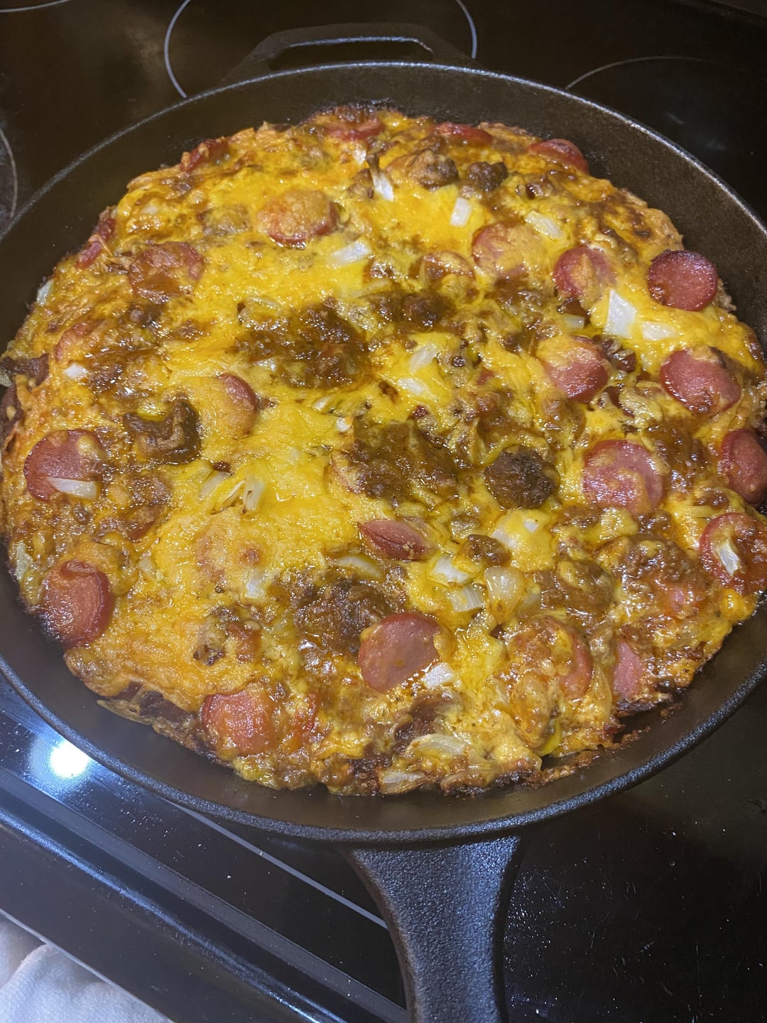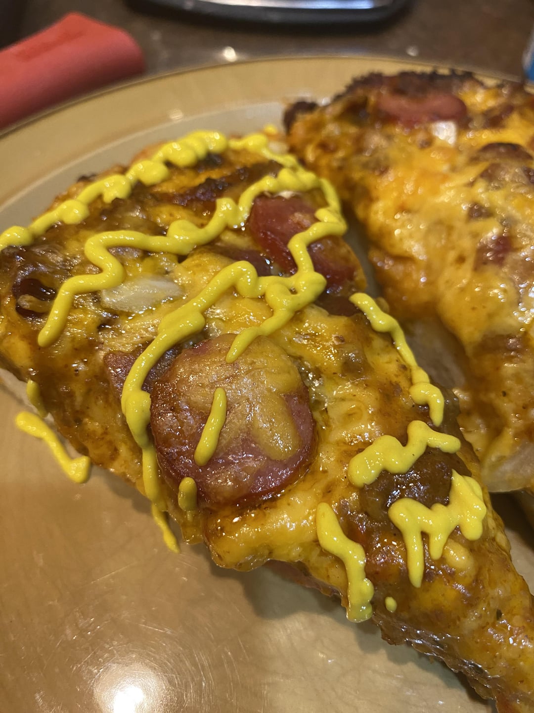 Made a chili cheese dog pan pizza last night. Have I committed a crime?