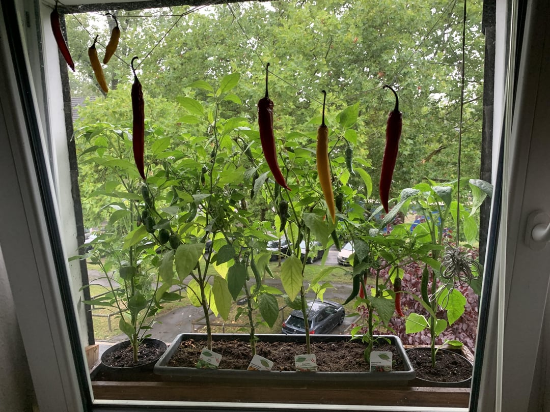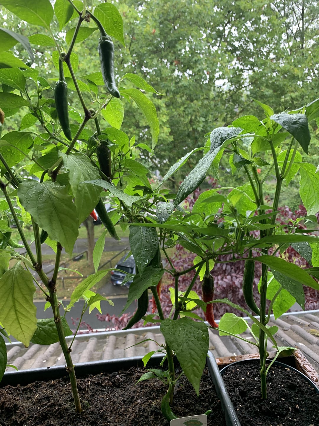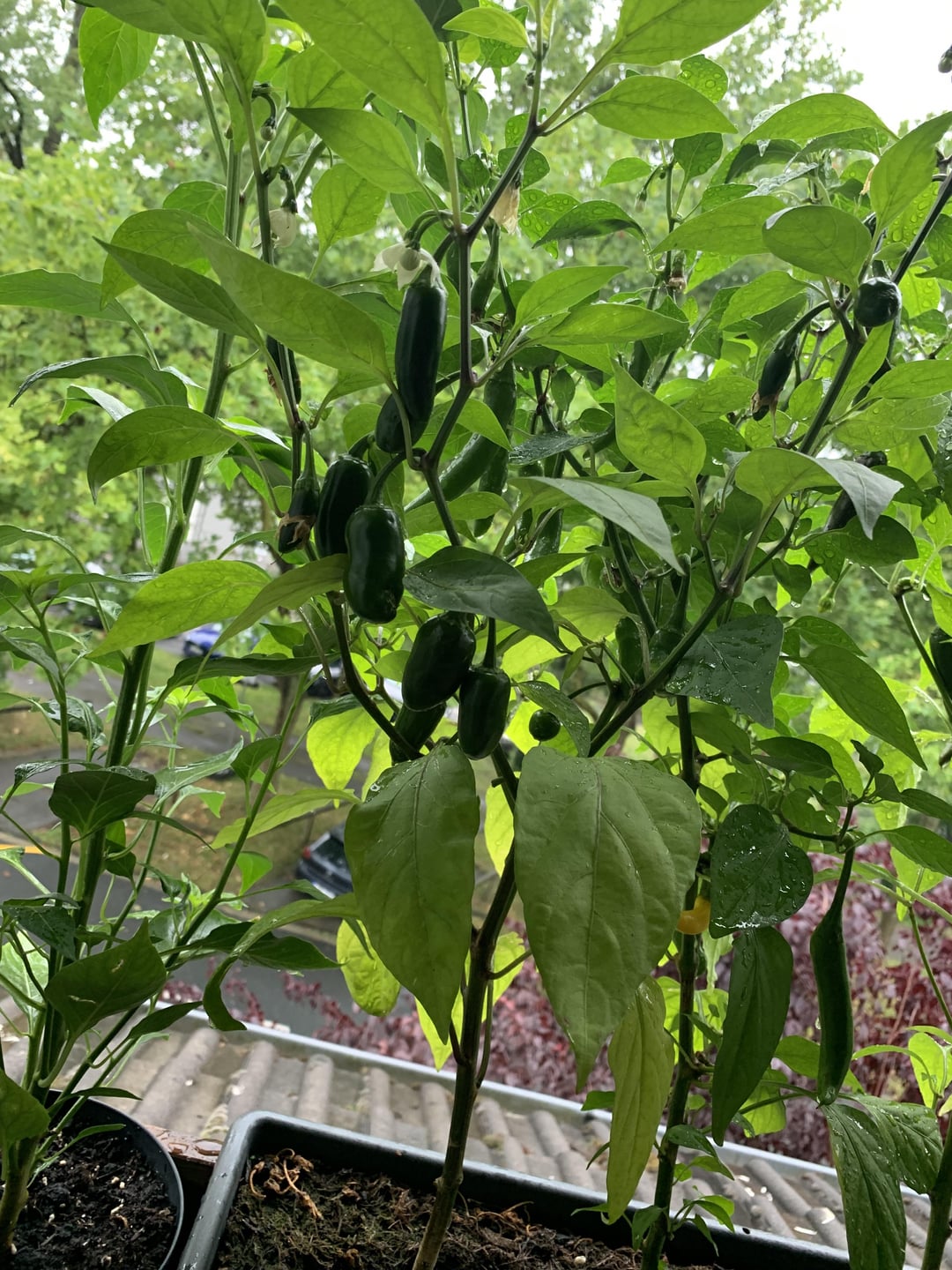 The 4 in the middle where bought as small plants from a store and the ones on the left an right have been raised from seeds. I’m happy that they are growing but just waiting for the ones in the side to finally produce some peppers 😂 bit since they already have some flowers, itshouldn’t take too long.
