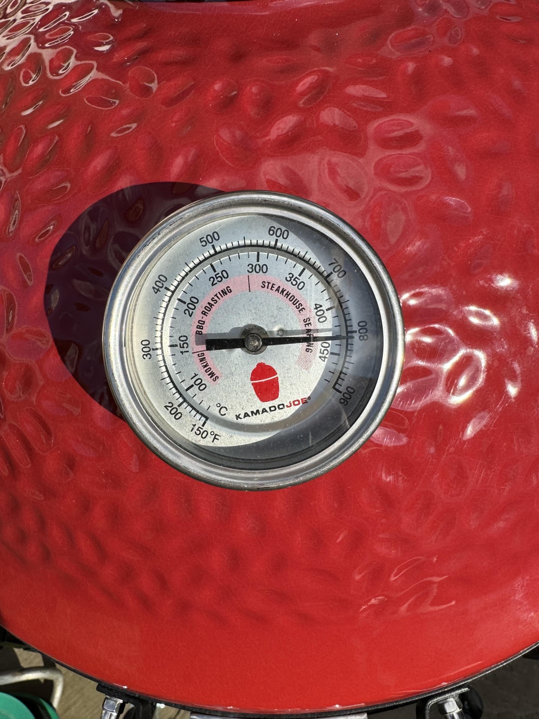 Lit the Kamodo, went for a shower and shave. Only gone for 15 mins and the temp hit 810f. No grates or deflectors in. 😮.