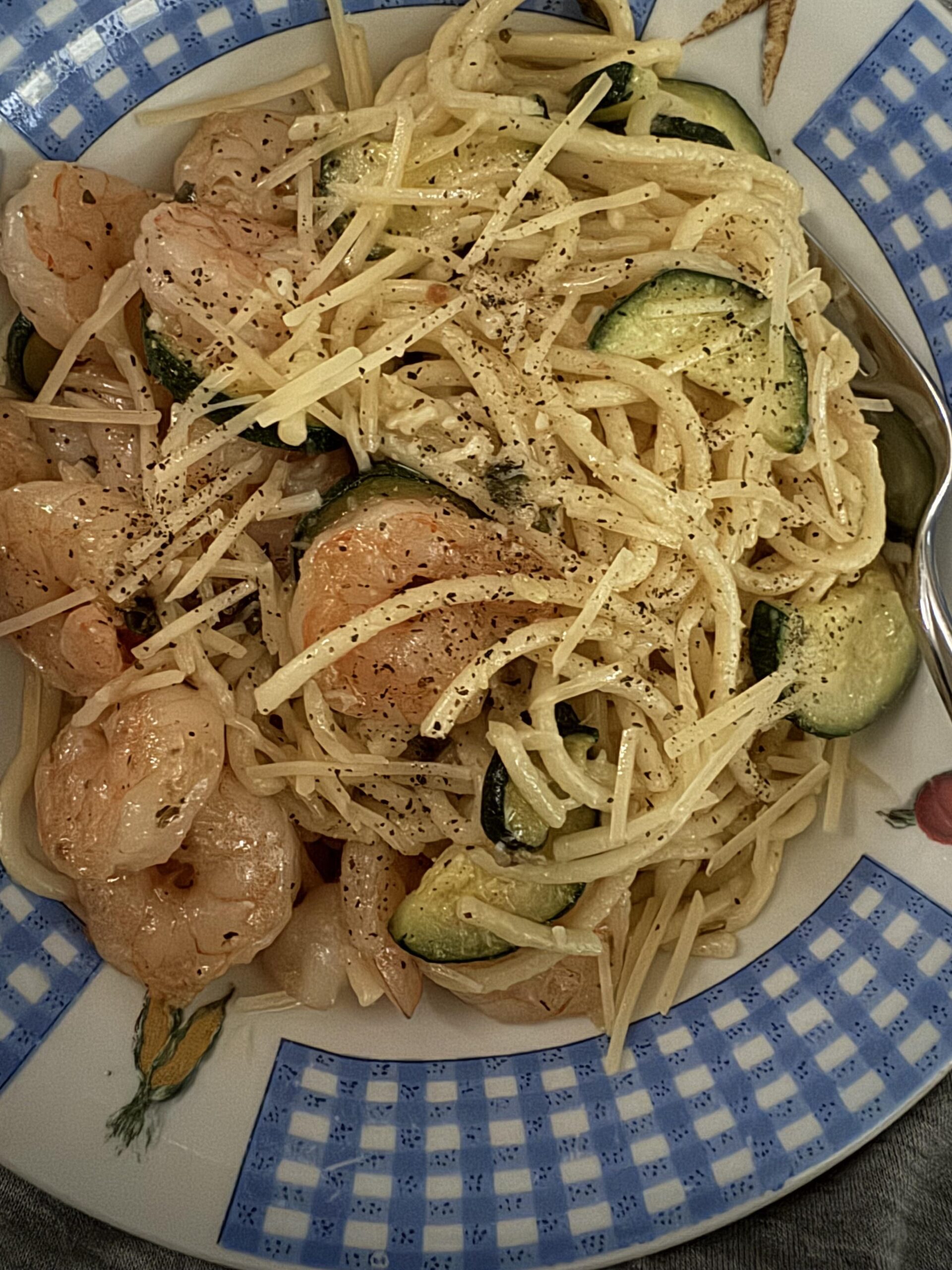 This is the shrimp spaghetti with a kick. I added more black pepper because that’s how I am. This was really good I’d get it again.
