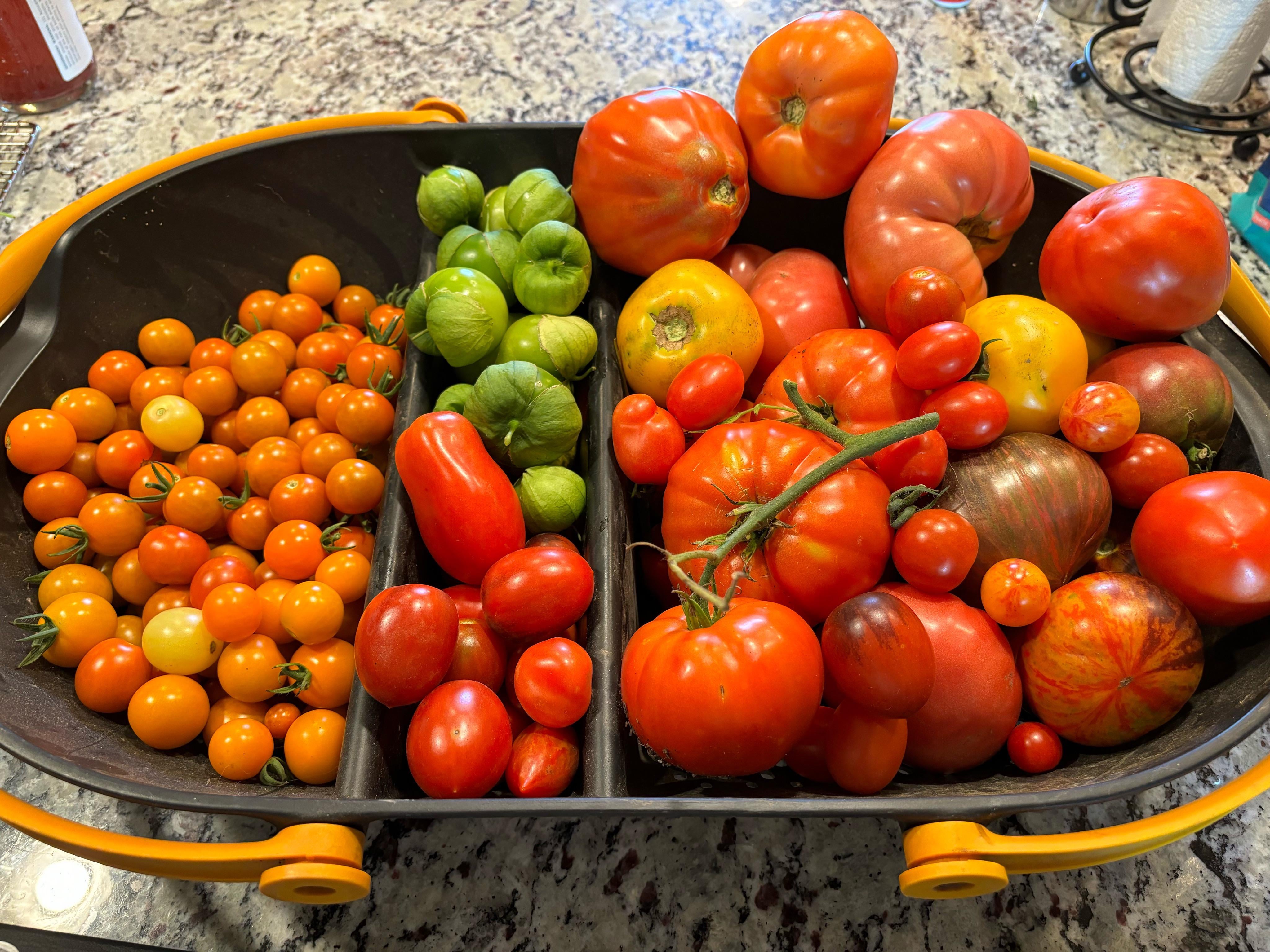 Cool container! What’s the fun tomato in the bottom right? And is it all sungold in the left, or what’s in that one?