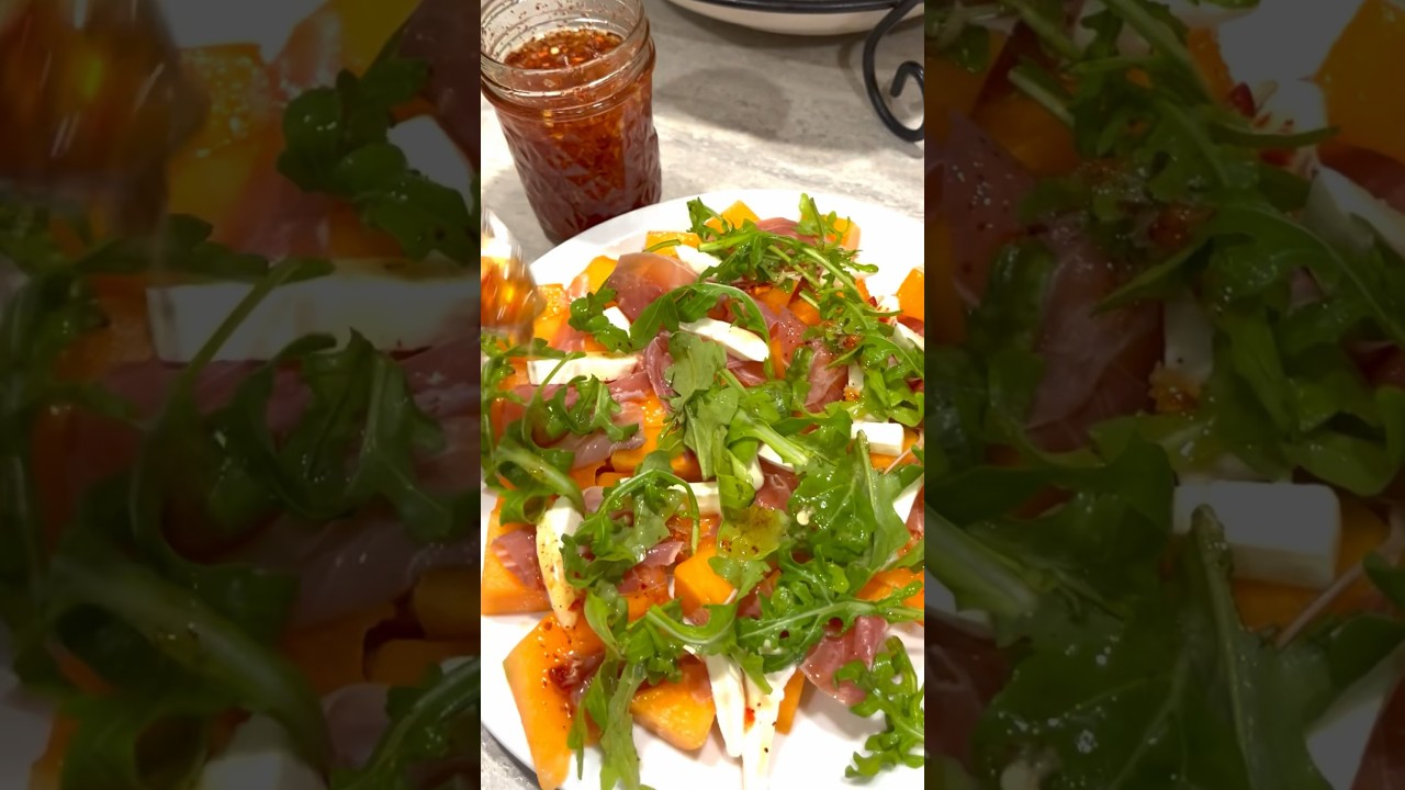 Summer Prosciutto Salad Cantaloupe Prosciutto Mozzarella cheese Arugula Hot honey (Warm up honey with chilli flakes and let it chill before adding it to the salad) Write A CommentYou must be logged in to post a comment.