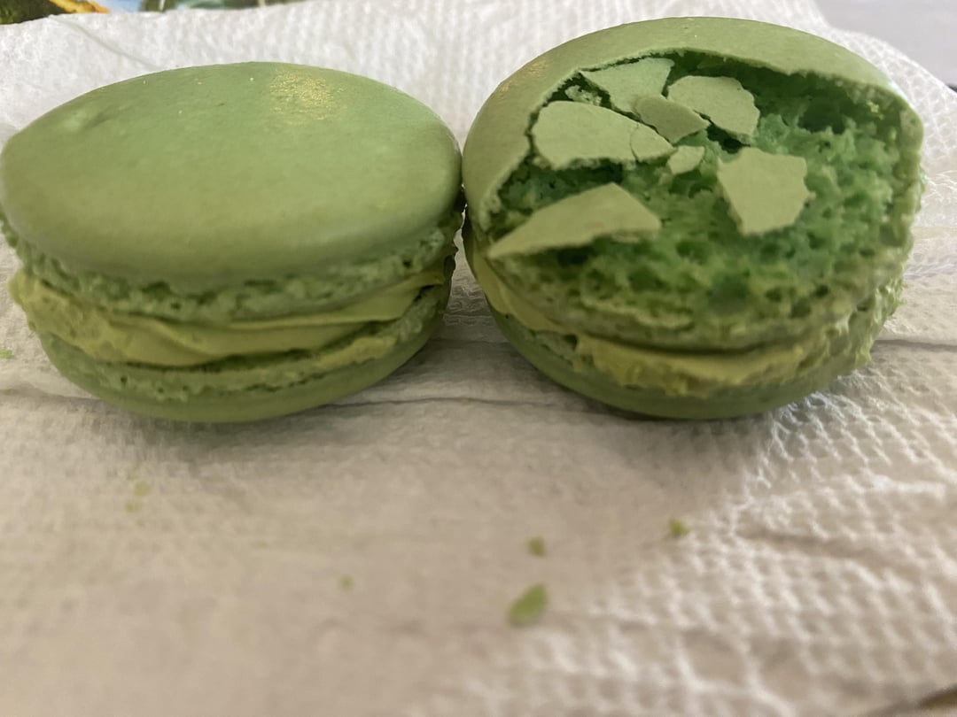 I also had to realise in my trials and error that I was using too much liquid flavouring/colour which made 90% of my macarons crack. Even though it was what my recipe called for when I multiplied it.