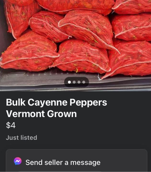 $4 for a fat bag of cayennes? Sounds like a great deal to me. Make some homemade Frankβs lol