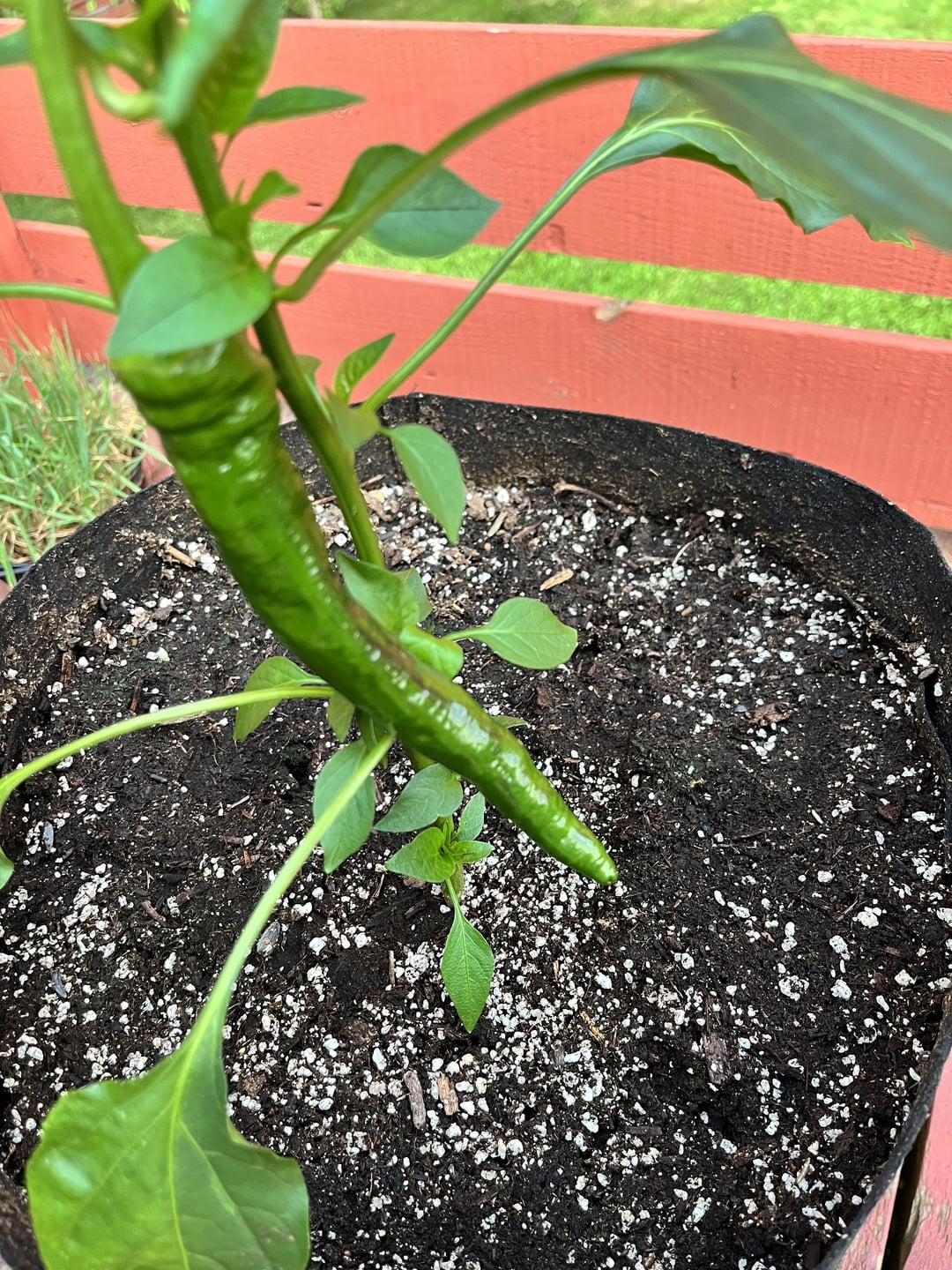 Help identify and will it turn red?by Butter_Naan_Staan 5 Comments Butter_Naan_Staan 1 year ago Seems like it’s still growing quite a bit daily, if it doesn’t turn red how will I know it’s ripe before it goes bad? Charupa- 1 year ago Cayenne maybe? Will turn red. andrew12160 1 year ago Definitely could be cayenne like the previous comment says but it looks a little large to me. Maybe a Portugal Hot? andyscau 1 year ago Cayenne as others have mentioned. Looks to me like a variety called ‘Joe’s long cayenne’. Interesting_Bell_517 1 year ago Cyanne long. Yes turn red when ready Write A CommentYou must be logged in to post a comment.