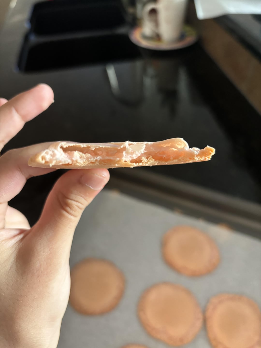 I attempted to make macarons for the first time and followed Tasty’s recipe. I baked them for 17 minutes at 300*, but the feet spread and the inside was hollow. Any reason to why this happened??