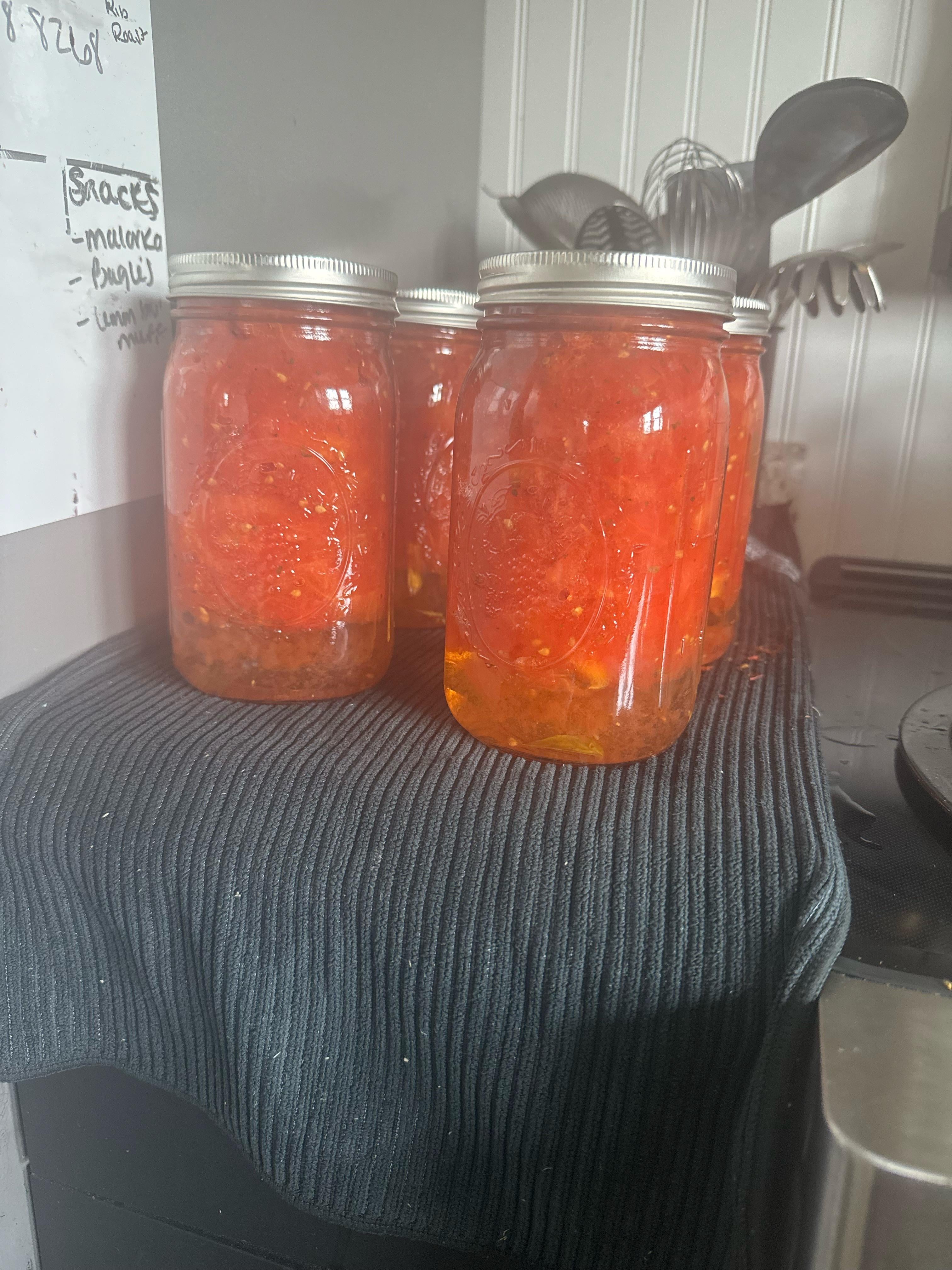 I cook them down a lot more before canning, to make more efficient use of jars and storage space. If you cook them down a good bit first, they won’t separate like this. I mean, I simmer for a couple of hours or more