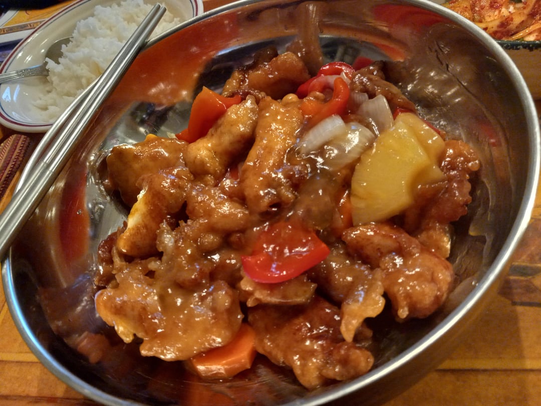 Tangsuyuk 탕수육 with homemade cucumber kimchi. This really hit the spot…