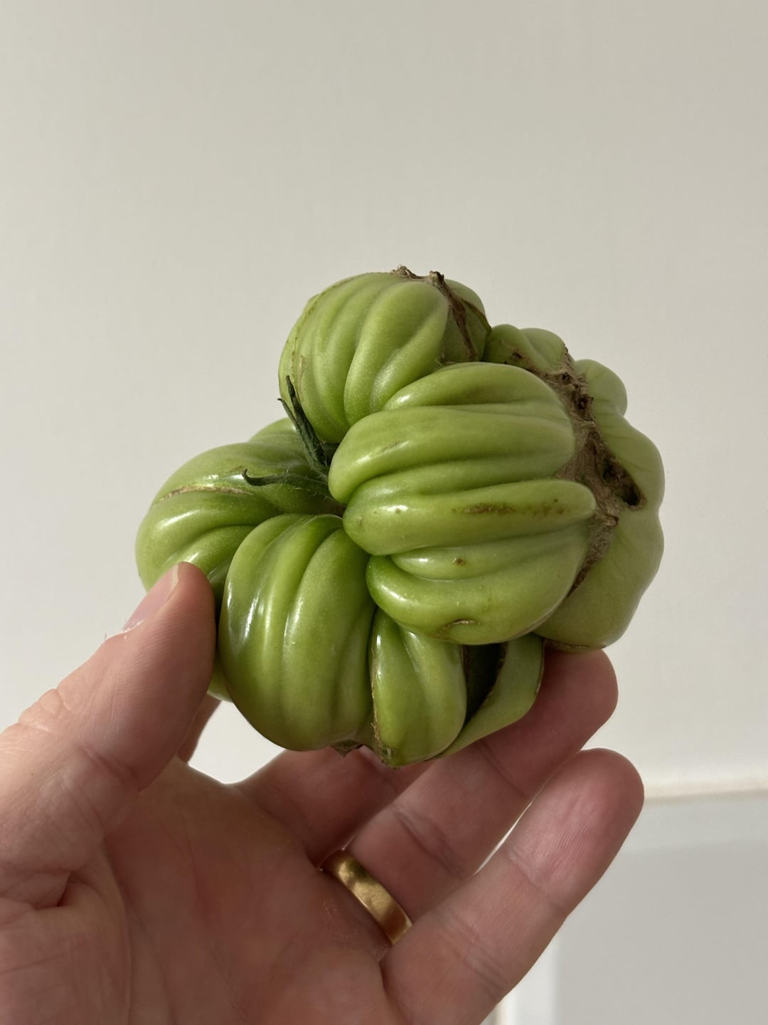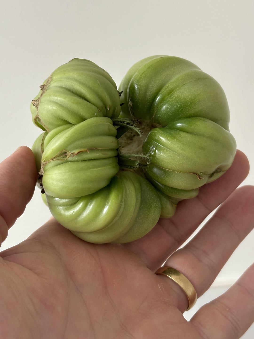 Fused flowers pollinated and produced malformed fruit. It’s safe to eat and I think it’s beautiful.