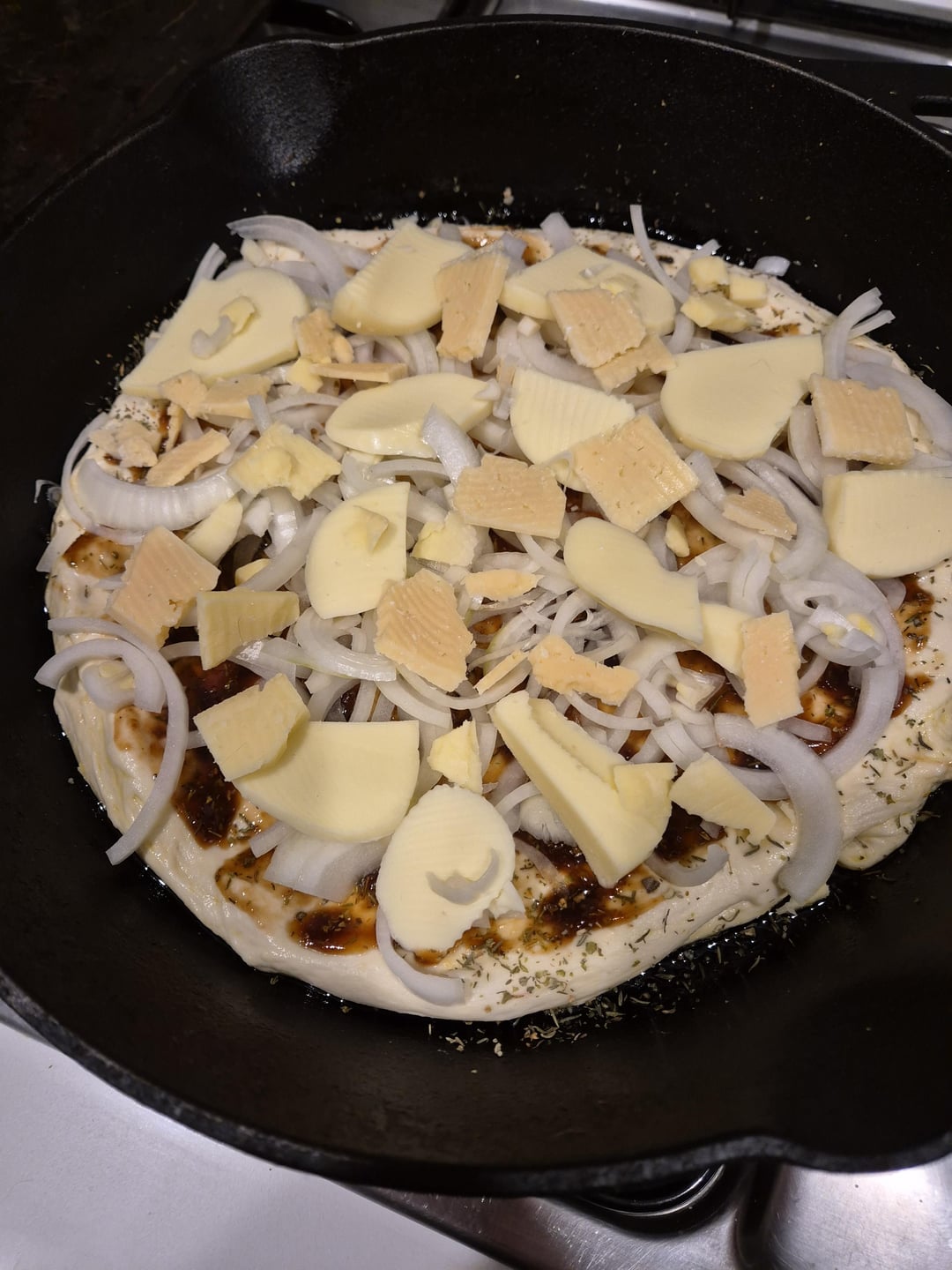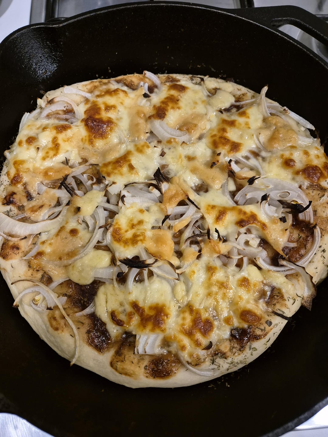 Forgot to add the cooked photo last time so here is my second onion pizza! Bbq sauce, garlic and mixed herbs along with onion, smoked cheddar, pecorino and mozz