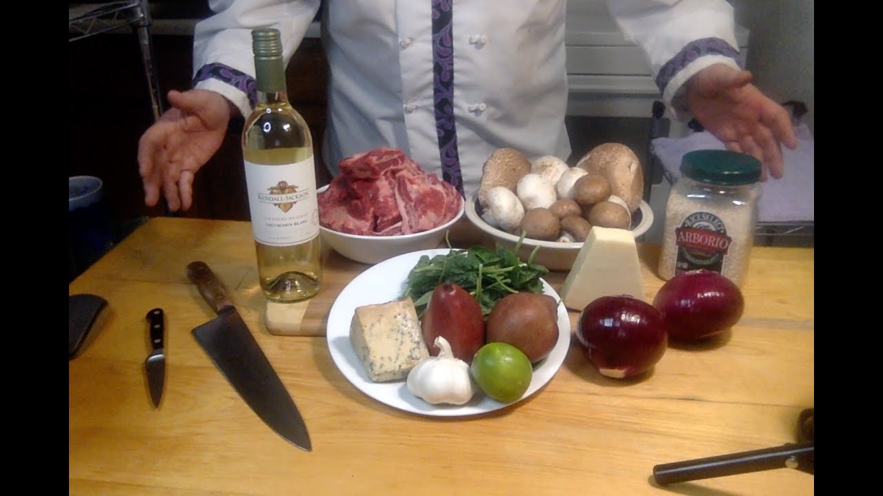 Risotto: Arborio Rice (rinse well), Chicken Stock (make your own, no salt), Mushrooms (your choice), Olive Oil, Unsalted Butter, White Wine.