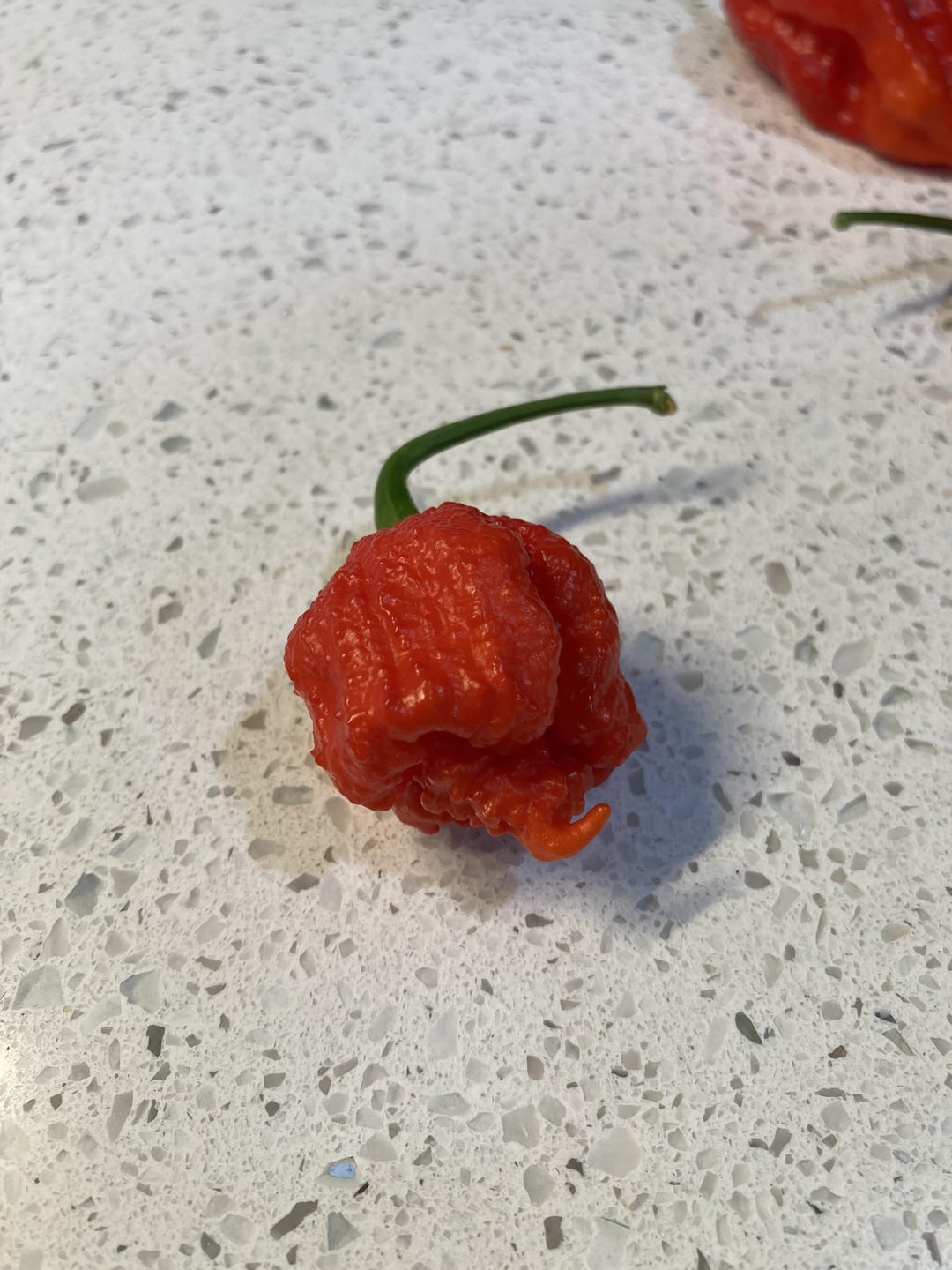 In the background you have my “what was ripe” project (where I just harvest and throw em in a fermenter and make sauce out of it), but in front of that is….. MY FIRST REAPER!!!!