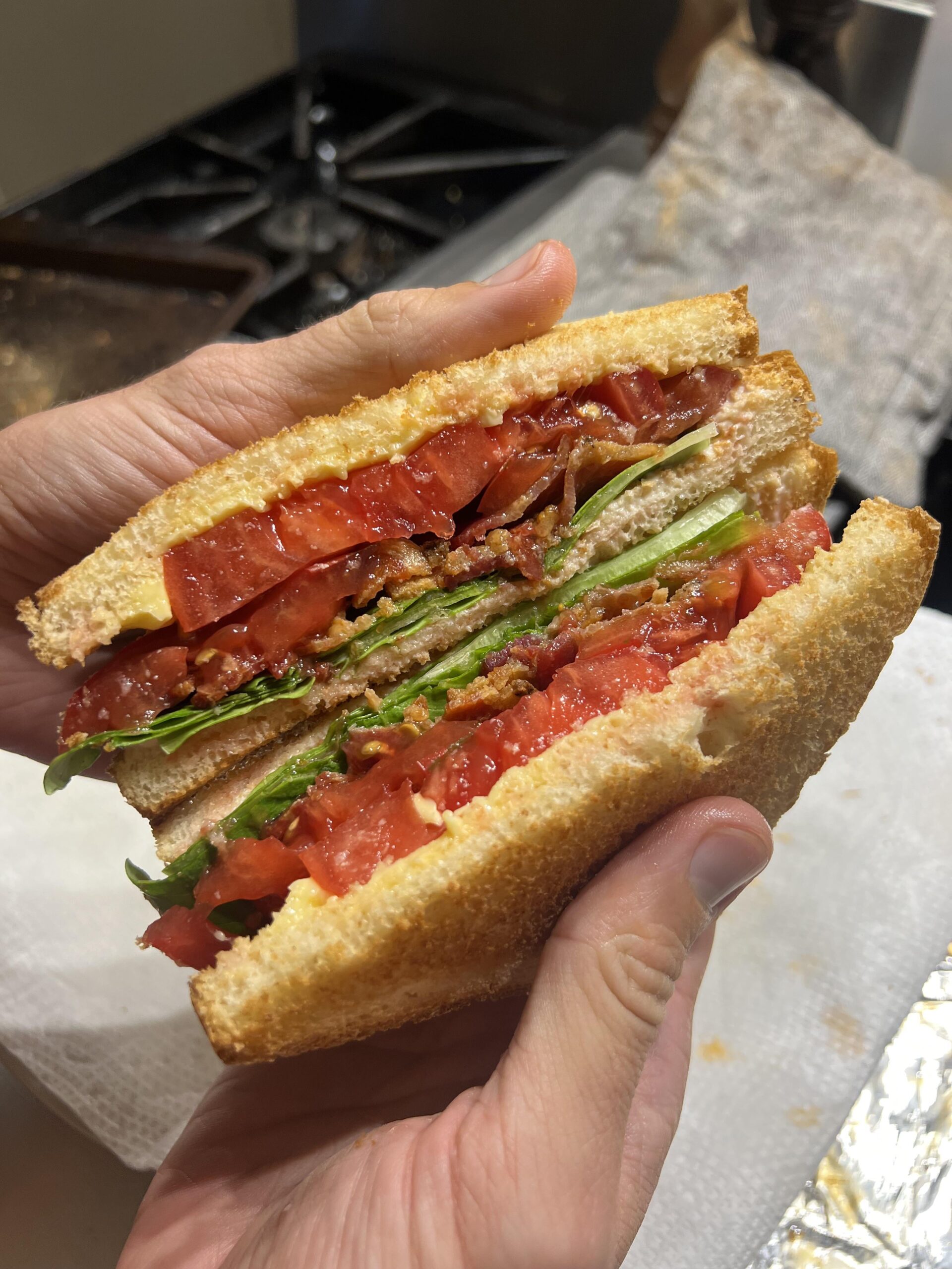 So Jersey kind of has a reputation for good sandwiches with the classic Italian sub being pretty well known, but something else we have are arguably some of the best tomatoes you’ll ever have. When tomatoes are in season like they are now, and you get some heirloom beefsteaks from a farmers market that were literally picked same day or the day before, you can make bullshit good BLTs. Bonus points if you got Neuske’s triple thick cut bacon on there too, but that’s my personal preference. Your sandwich looks top notch and I think I’m gonna make one myself tomorrow lol.