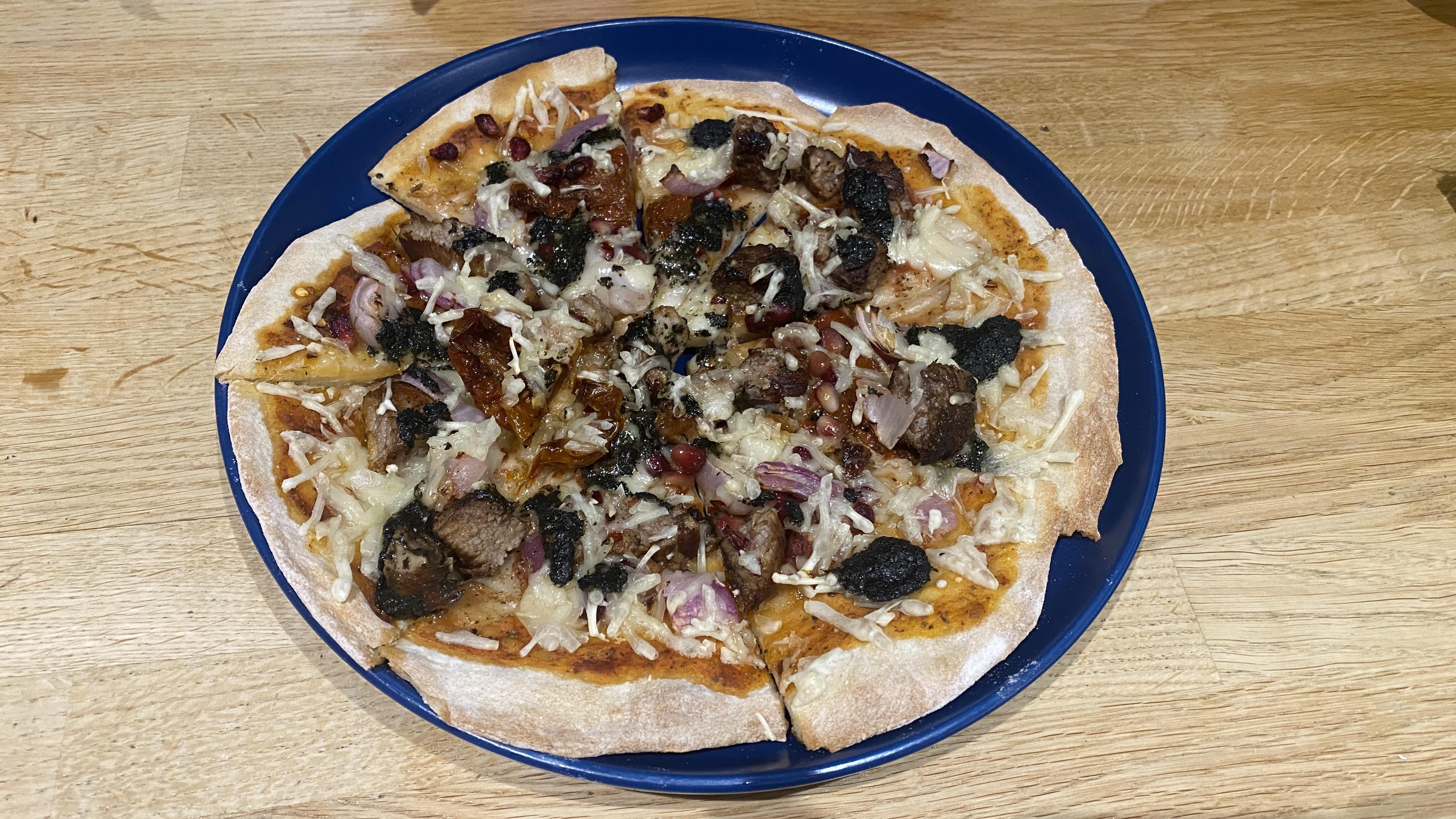 Lamb and mint, pizza crime? With some token vegan cheese.