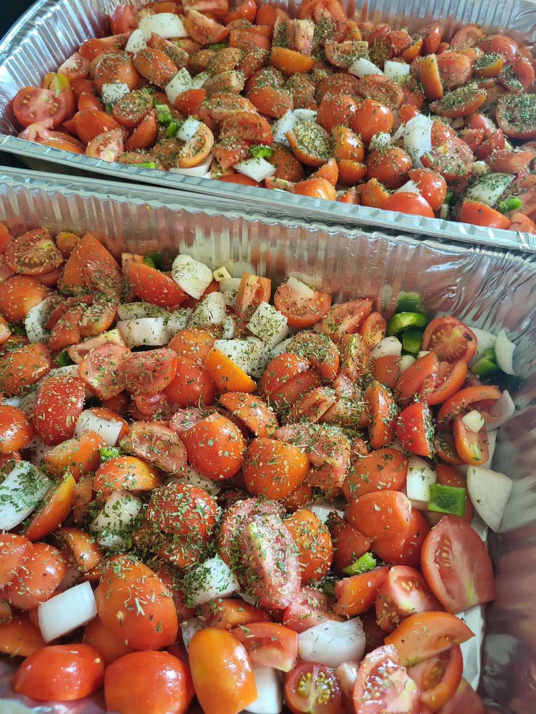 I ended up cutting two huge trays of tomatoes right on my couch. He's climbing on everything and it would of taken me ages to cut them all in the kitchen; constantly going back and forth checking of my kids.