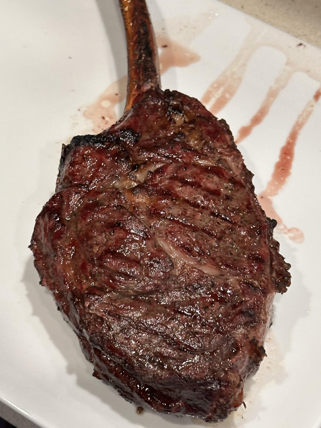 Practice run before I throw some Snake River Farms wagyu tomahawks on the Kamado. Smoked at 225 indirect to 115-120 and then seared direct on lower grate for 90 seconds on each side. Asparagus and peppers grilled after. Don’t think I’d change anything.