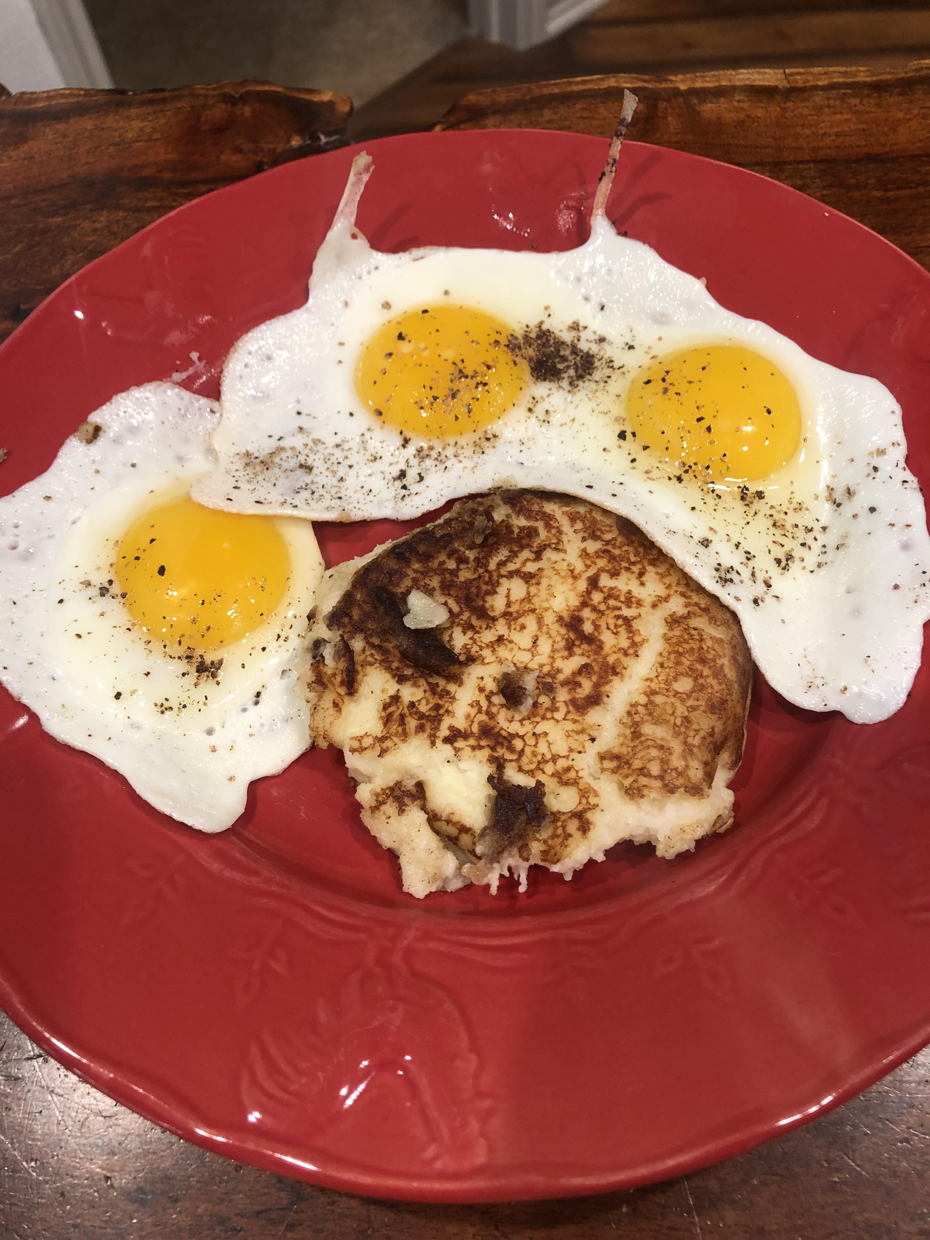 Potato pancakes were delicious. Leftover mashers with an egg, flour and some cream.