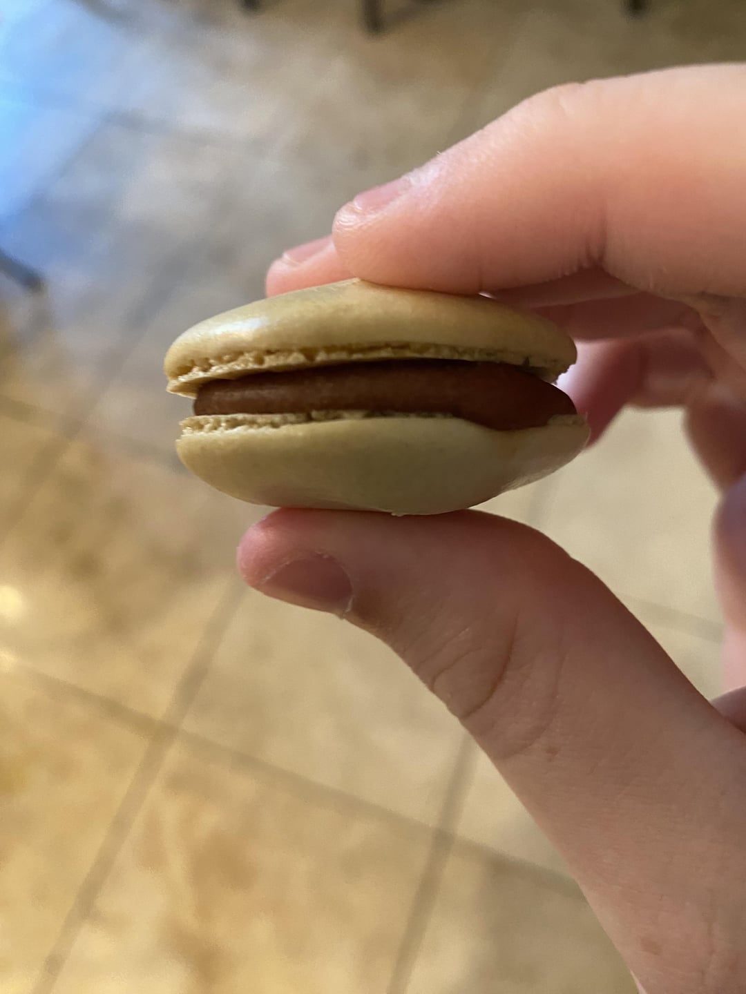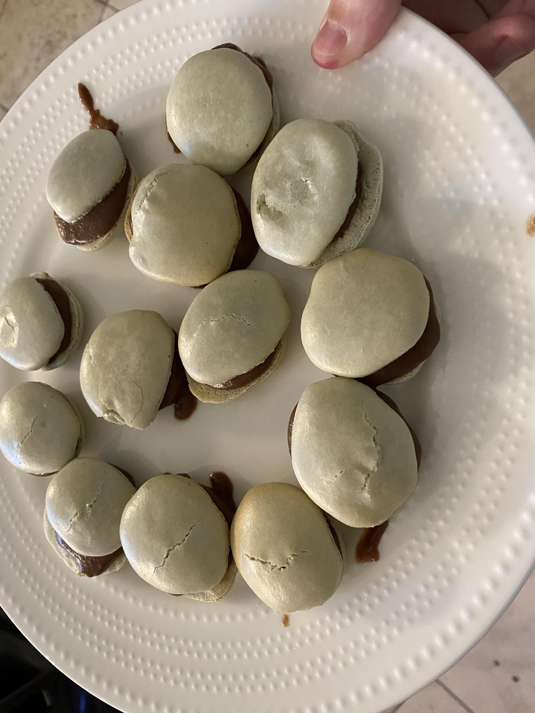 Overall they were vastly superior to the last attempt. The shells, while some were hollow and/or cracked, were closer to macaron shells and they tasted great. Vanilla shells with a chocolate ganache filling.