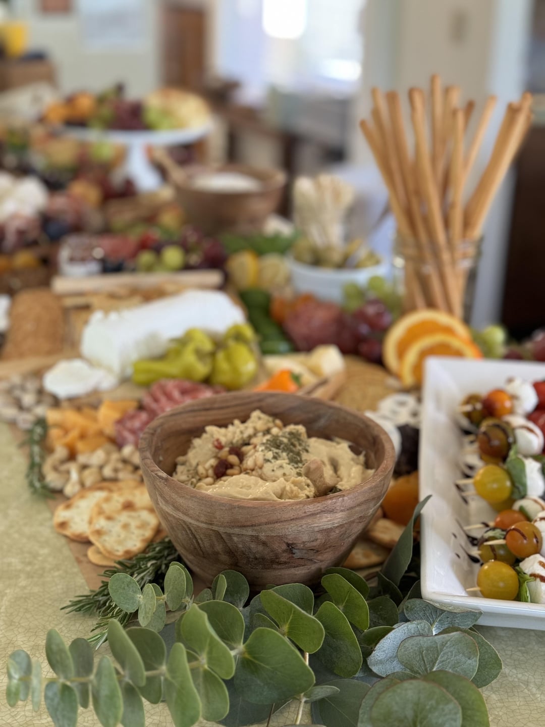 This was a lot of work, but also so fun! Most of the stuff came from Costco/TJ’s or Grocery Outlet. A few things from my local market (Nugget) and Home Goods. This fed 35 people with lots of leftovers. 4 ft long in total.
