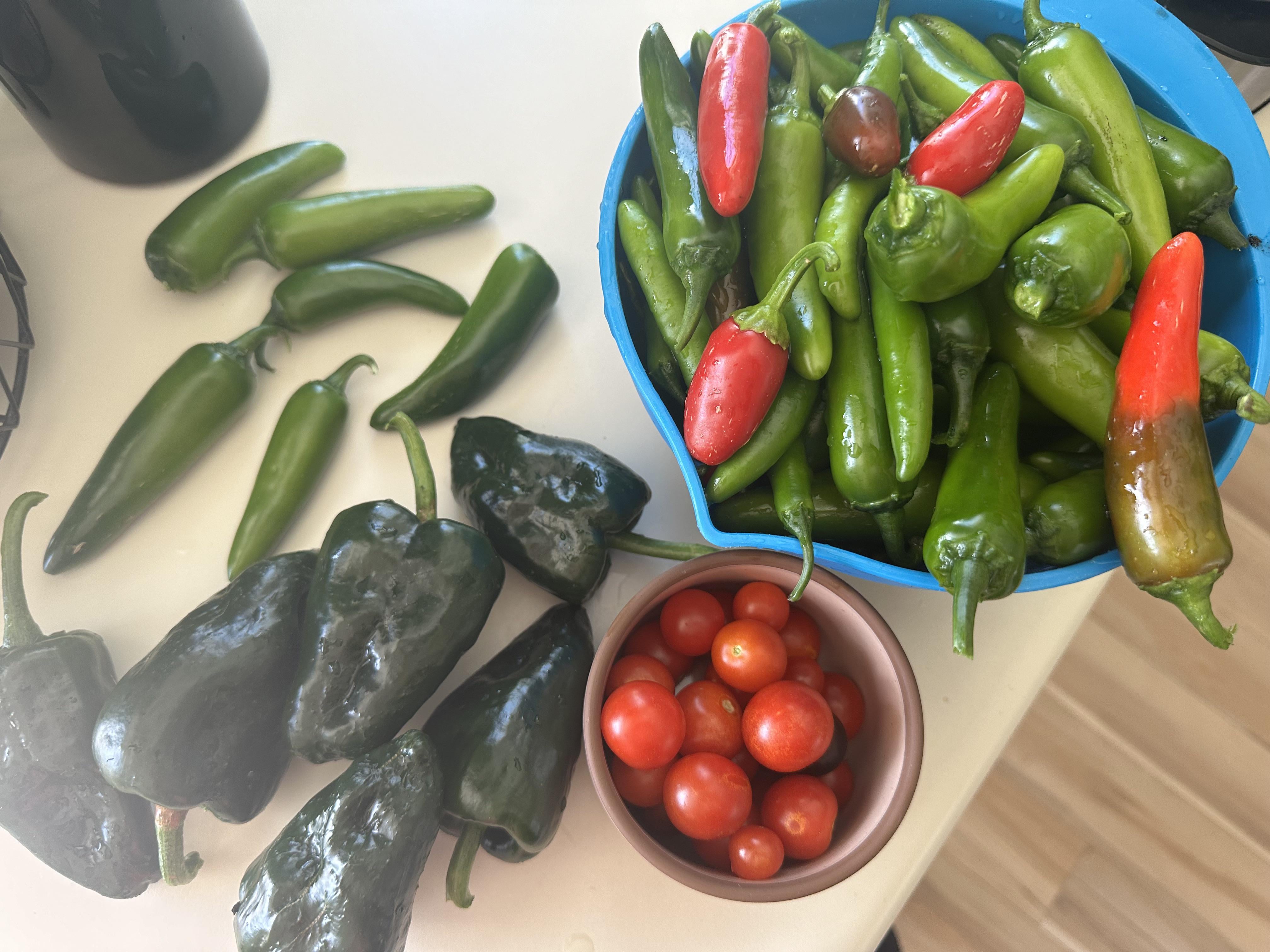 The poblanos you can chop and eat anywhere you’d put a bell pepper. Soup, stir fry, sausage and peppers, stuffed peppers, grilled or roasted. The jalapeño/ serranos you can freeze whole and pull out to add some kick through out the year. They chop well frozen and will blend into salsas with no change in taste. Don’t feel pressured to use them all at once. I have a couple gallon bags of hots that will last me a year.